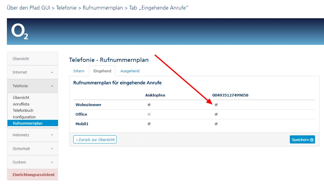 Wenn du generell keine eingehenden Anrufe wünscht, so weist du dem Anschluss der o2 Homebox 6641 an dem dein Telefonapparat angeschlossen ist, im Rufnummernplan keine eingehende Rufnummer zu. Siehe Anleitung.