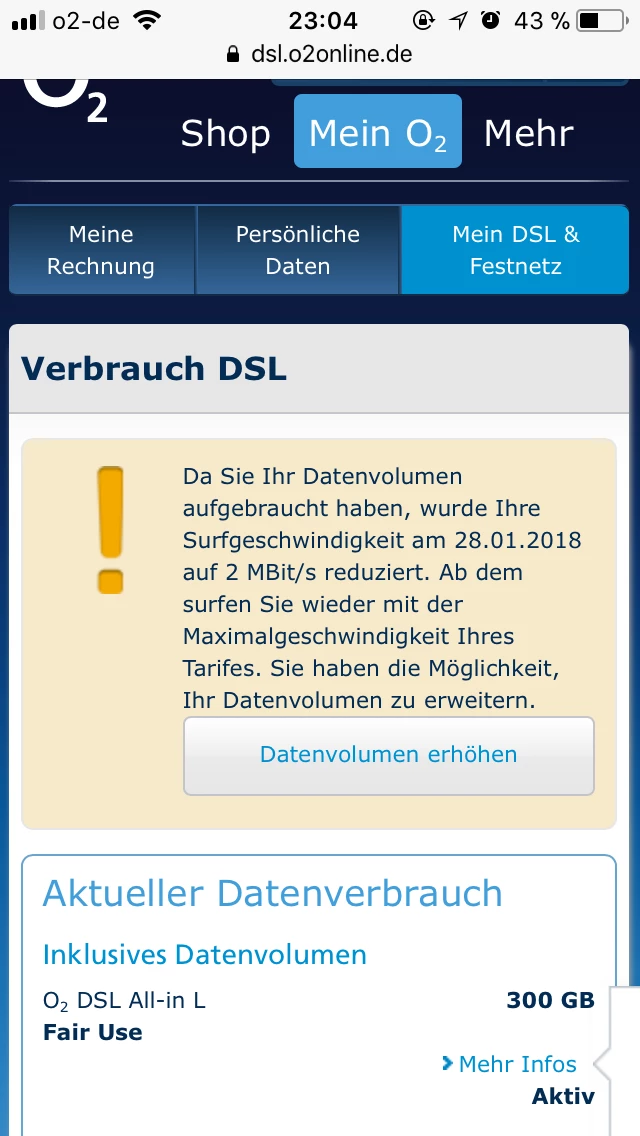 Leider sehe ich unter mein o2 nur den verbraucht meines Mobilfunk Tarifs, nichts zu meinem DSL Vertrag.