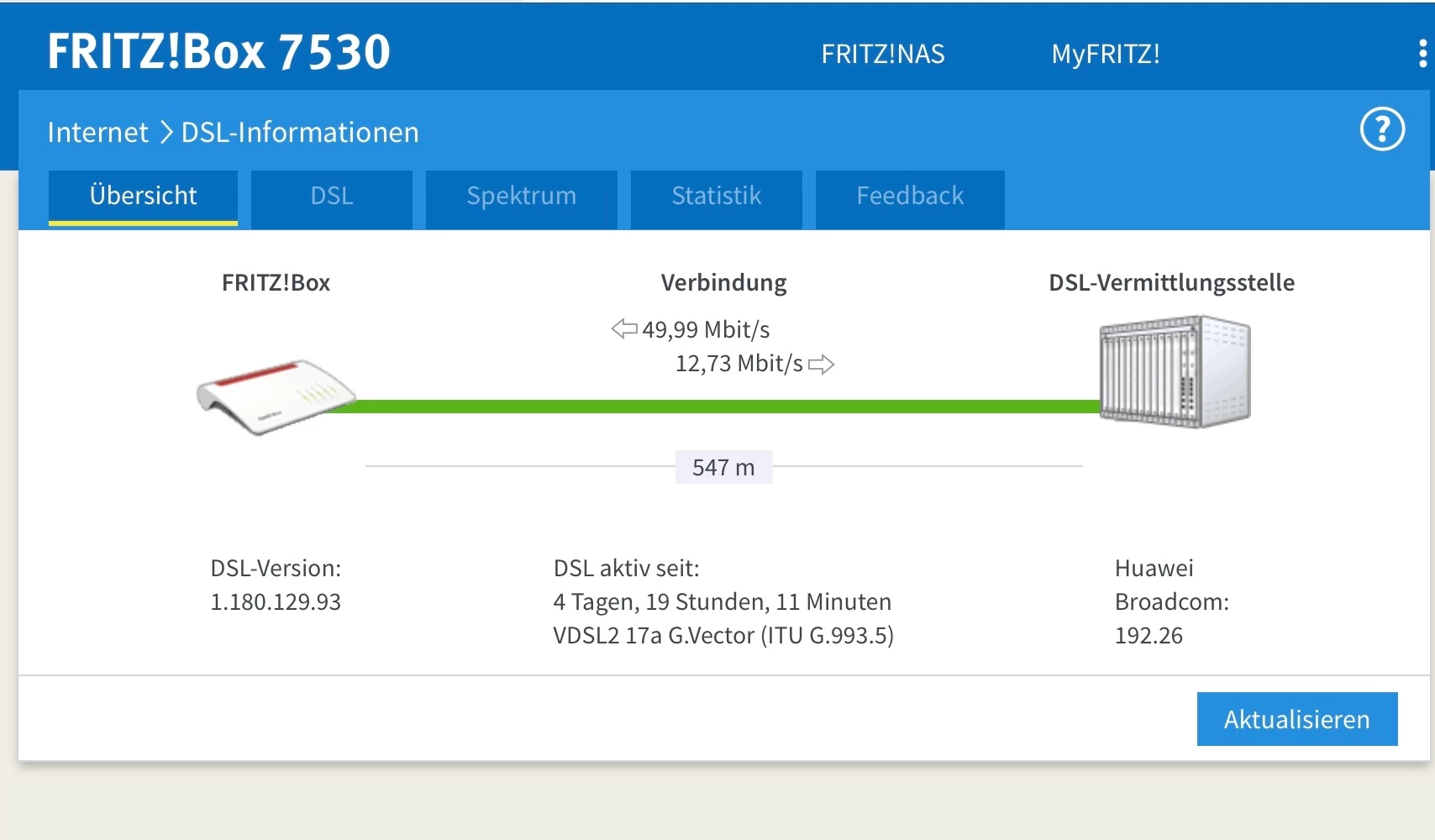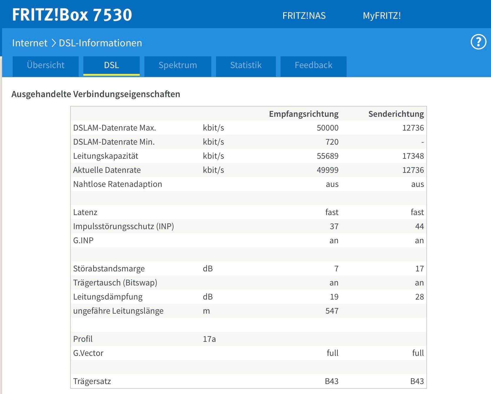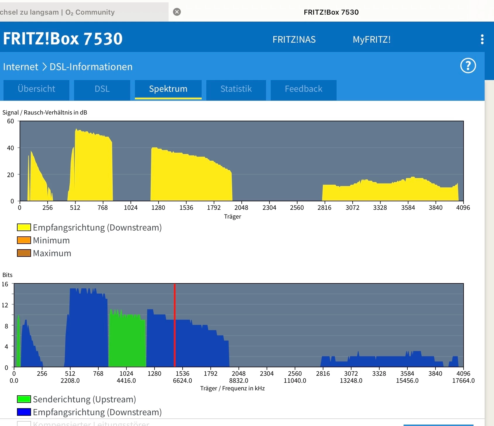 @DenT poste mal Screenshots von Internet/DSL Informationen die Reiter Übersicht, DSL und Spektrum und falls auf den Screenshots nicht sichtbar, welche Fritzbox genau eingesetzt wird. Danke.
