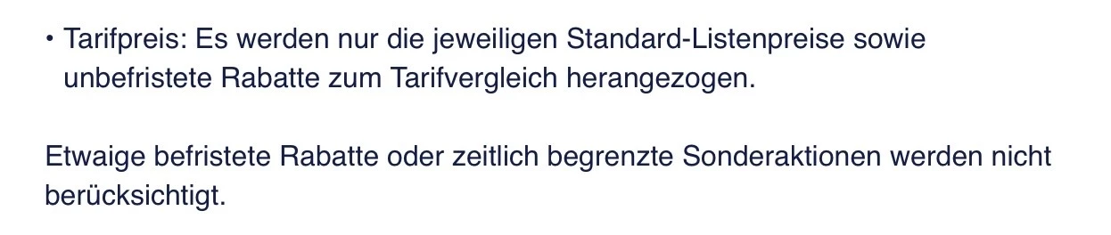 Die gesetzliche Tarifinformation berücksichtigt nur den Listenpreis bzw. unbefristete Rabatte. Das steht auch so drin.