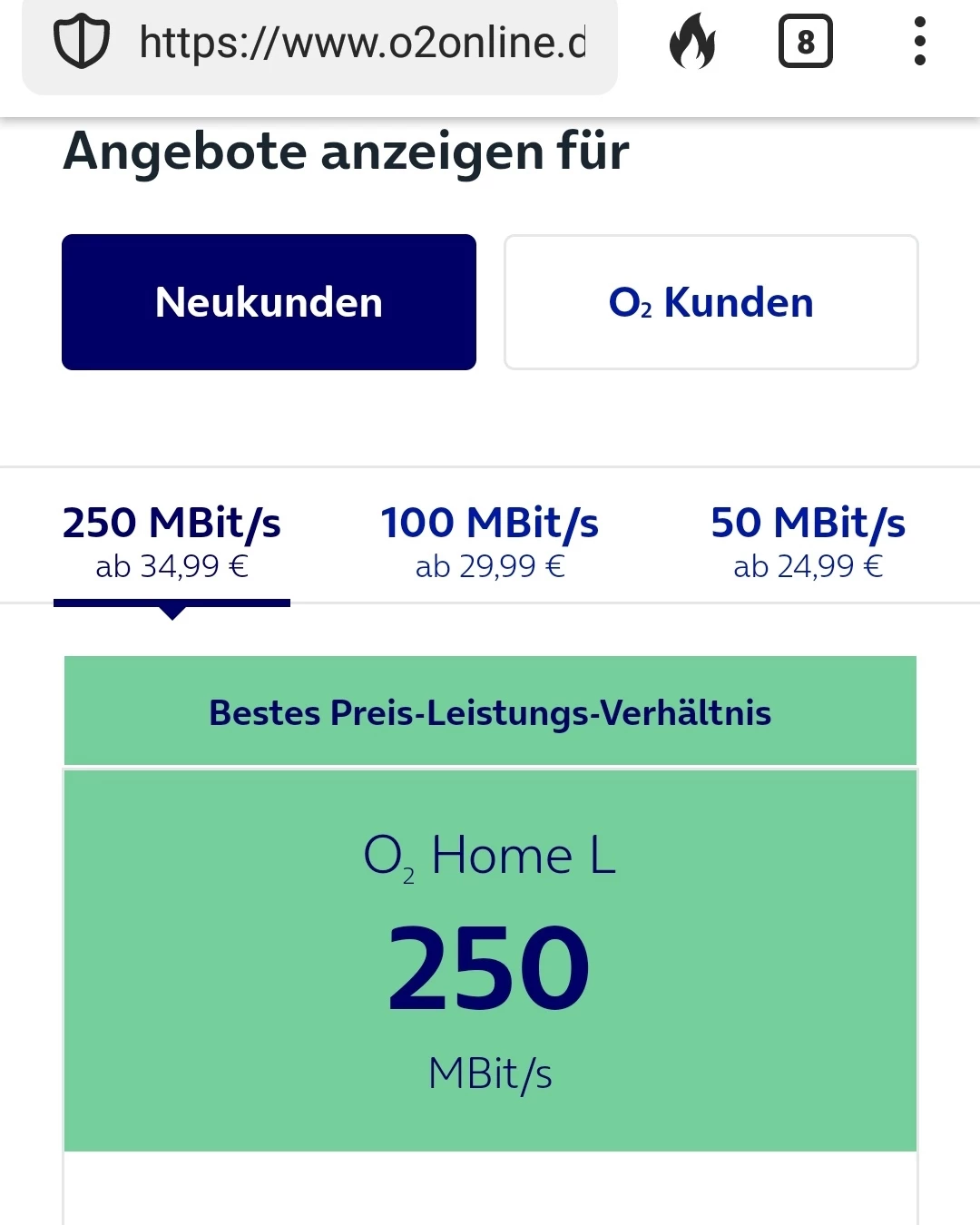 3. Und, der kritische Teil: ein neuer DSL-Vertrag musste her, für die Wohnung der Freundin. Hier habe ich lange überlegt, ob ich auch diesen Vertrag bei O2 mache, weil die Konkurrenzangebote für eine 250Mbit/s-Leitung schneller bzw. günstiger sind.