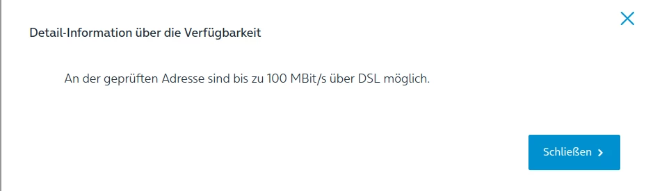 "Höhere Datenübertragungsarten sind bei Ihrem DSL-Anschluss derzeit leider technisch nicht möglich."