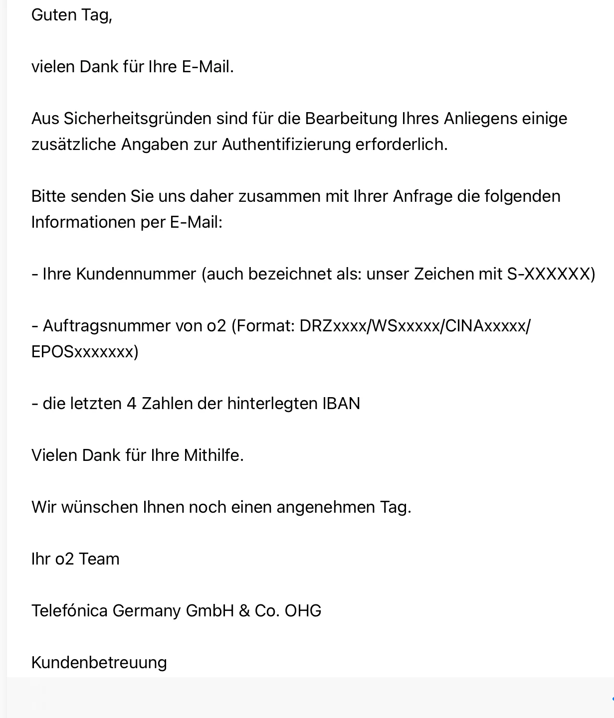 eine Kundennnummer(unser Zeichen) habe ich nicht, weil ich noch keinen Brief bisher bekommen habe. Hoffe meine Rückmeldung mit den restlichen Angaben genügen? Siehe Mail unten.