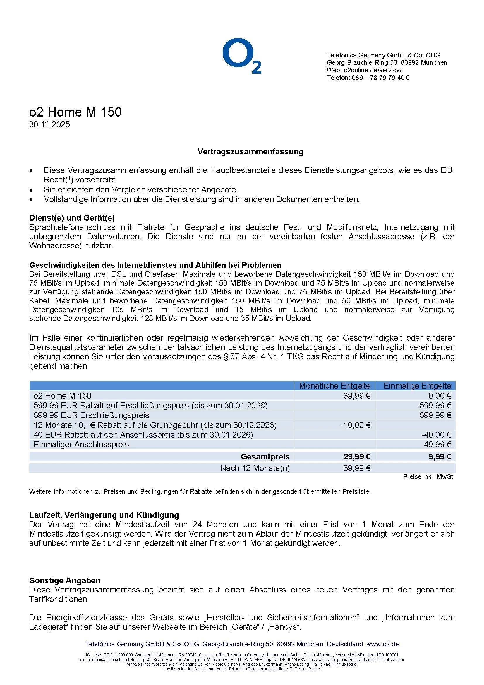 Hintergrund ist weiterhin der vereinbarte Technologiewechsel auf Glasfaser (o2 Home M 150). In dem Telefonat mit Ihrer Kollegin wurde klar eine Verlängerung mit Technologiewechsel vereinbart: einmalig 9,99 € sowie anschließend 29,99 € monatlich für 24 Monate.