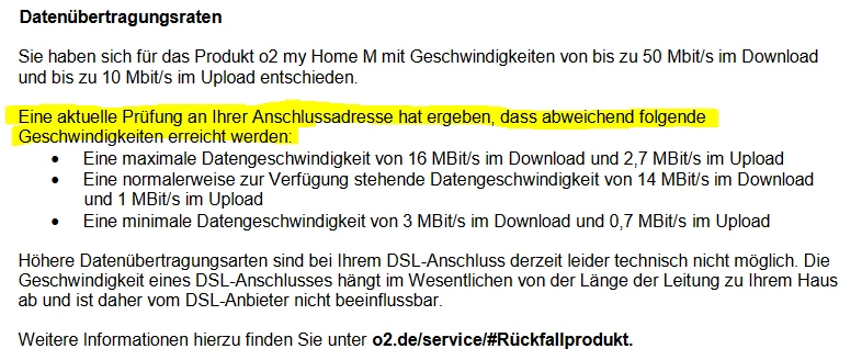 @krissuplay Wahrscheinlich hatte dein vorheriger Anbieter Zugriff auf VDSL von einem regionalen Anbieter (Netcologne usw.) Dies ist bei o2 nicht der Fall, so dass nur ADSL mit bis zu 16 Mbit geschaltet werden konnte.