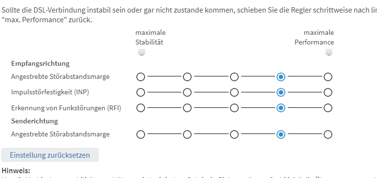 Bitte die Box wieder auf maximale Performance fahren und nochmals die Leitungswerte DSL aus der Fritzbox hier posten. Der Upload muss dann höher sein.