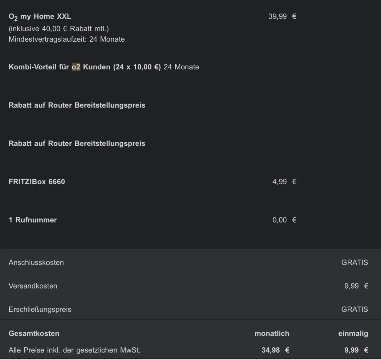 habe einen o2 Free Boost L Vertrag und nun den MyHome XXL dazugebucht. Bestellt wurde folgendes: