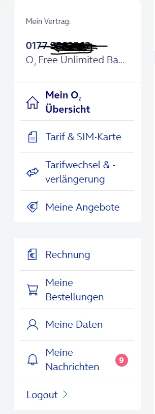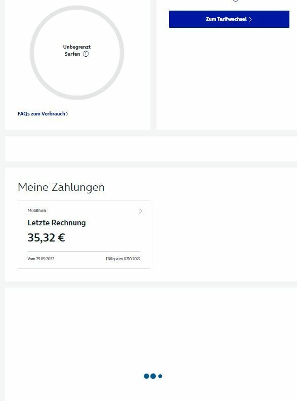 In meinem o2 Account sehe ich nur meinen Mobilfunkvertrag. Es sieht so aus als würde die Seite etwas laden, unter den Mobilfunk Angaben ist ein leeres Feld, es kommt aber nichts mehr.