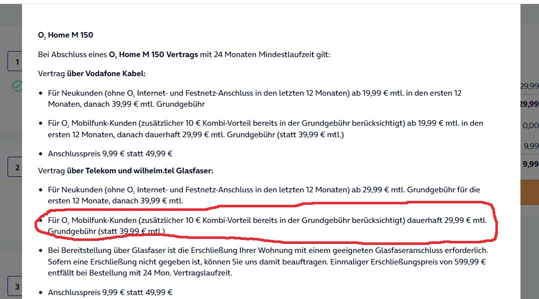 ich glaube, der Kombirabatt für Glasfaser funktioniert etwas anders. Das System zeigt an, dass bei einem bestehenden Mobilfunkvertrag eine um 10 € ermäßigte Grundgebühr gilt.