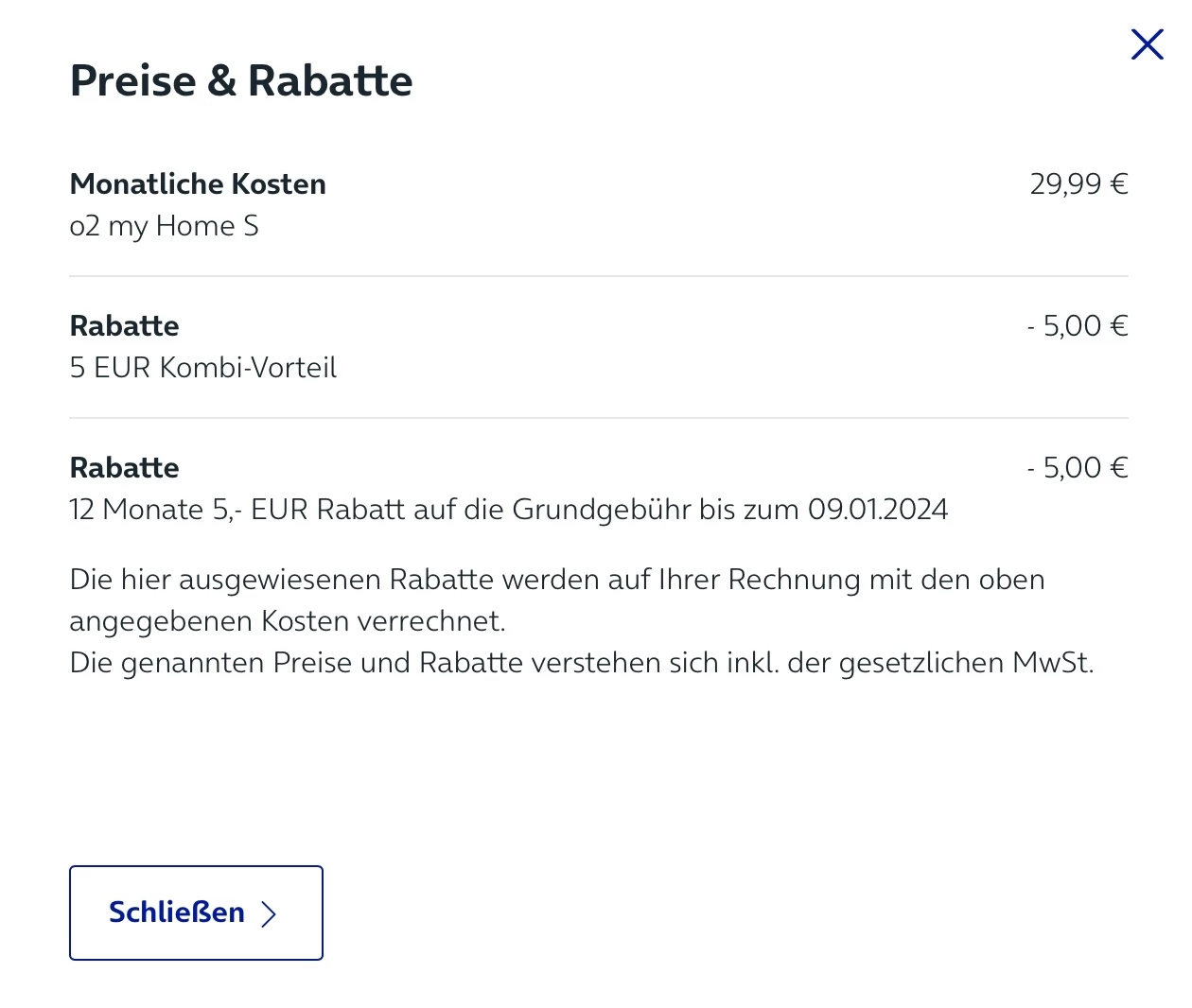 Schaue mal bitte in „Mein O₂“ unter Preise & Rabatte was da genau steht. Hier ein Beispiel: