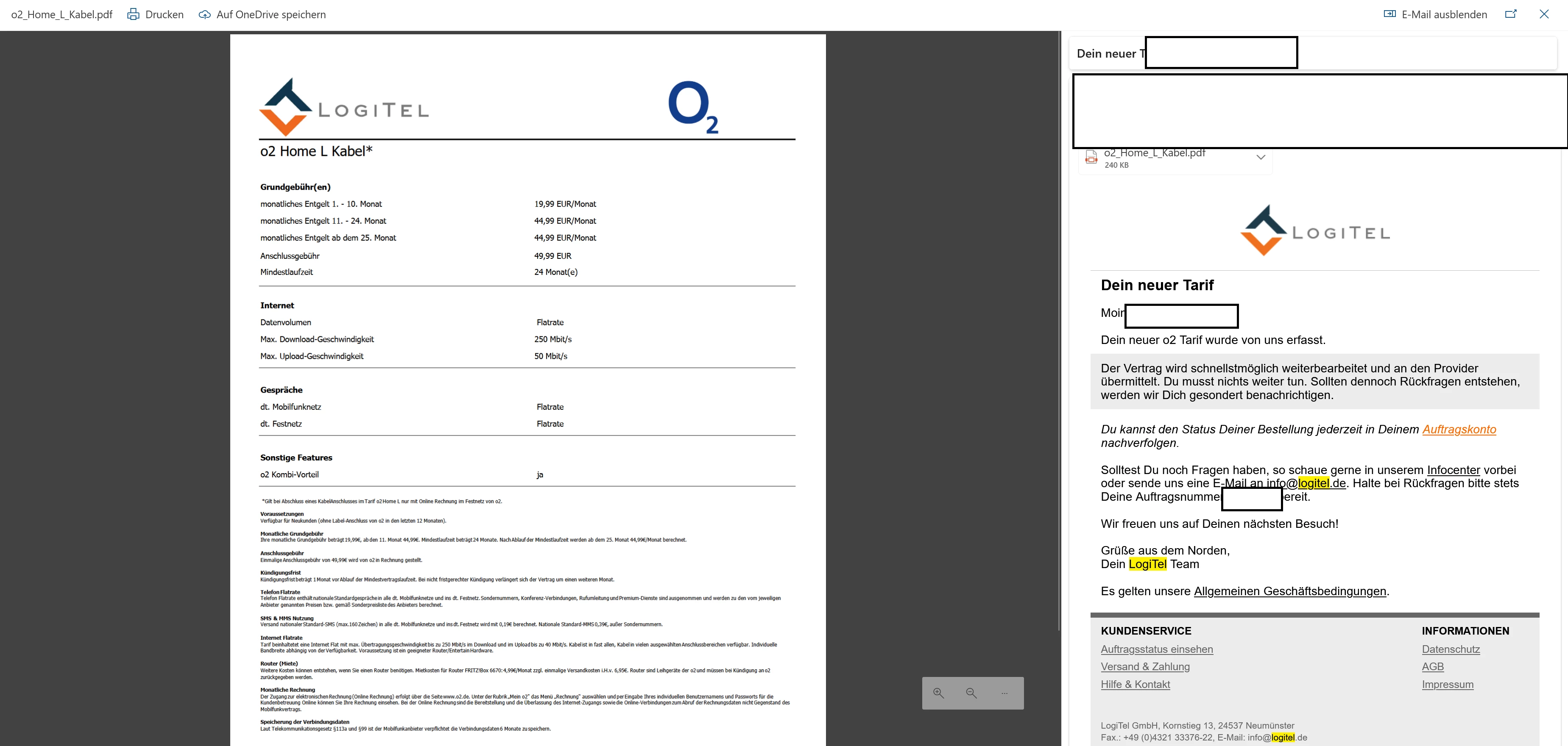 nach etlichen telefonaten und gesprächen mit o2 versuche ich es nun hier. Vorweg der Kundenservice und die Problemlösung bei o2 sind eine reine katastrophe. Ich habe bei o2 ein Mobilfunkvertrag abgeschlossen (O2 Mobile M Flex Online (2024) und diese wurde am 31.07.2025 aktiviert und die Rufnummer wurde zum 18.08 übertragen. Soweit so gut. Ich habe auch dann dazu bei logitel ein Kabelvertrag abgeschlossen (Home L). Mir wurde von logitel versichert und auch mitgeteilt ,dass es mit dem Kombivorteil keine probleme gibt, soll wohl in der vergangenheit einwandfrei geklappt haben bei anderen Kunden. Auch in der Bestätigung ist Kombivorteil mir JA beschrieben. Jedoch wollte ich nochmal sicher gehen und hab bei o2 angerufen und da die Antwort es wäre wohl nicht möglich und ich müsste alles stornieren und bei o2 buchen. Nur dann geht es. (Die Dame wirkte nicht wirklich erfahren und war sich unsicher).