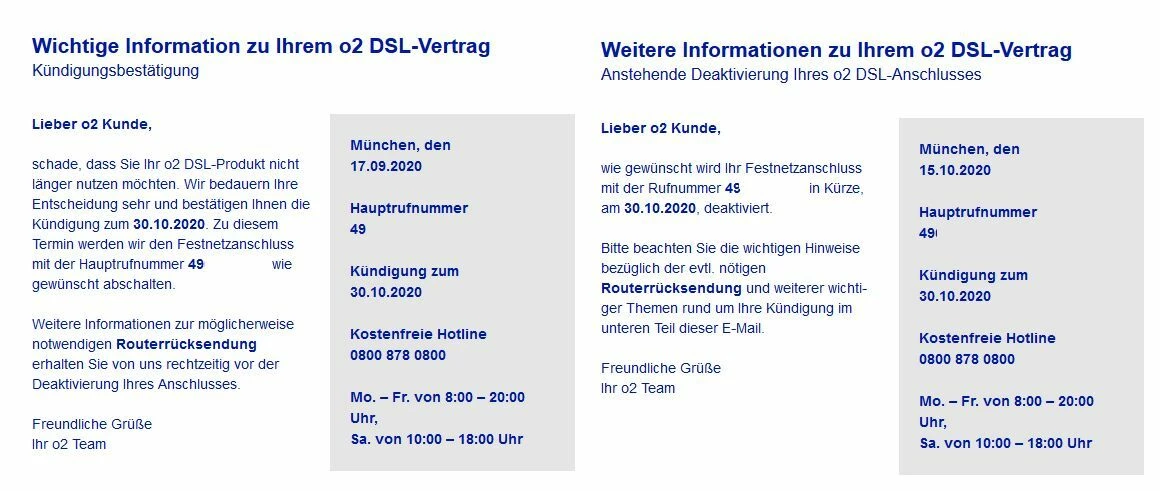Diese haben mir daraufhin geantwortet, am 15.09 Anstehende Deaktivierung Ihres o2 DSL-Anschlusses