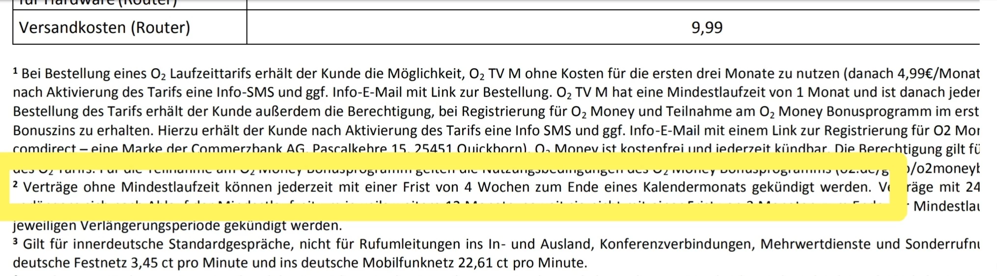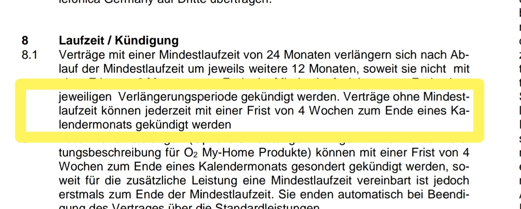 Und Sie O2 gesagt am 18.06.21 Vertrag Ende.