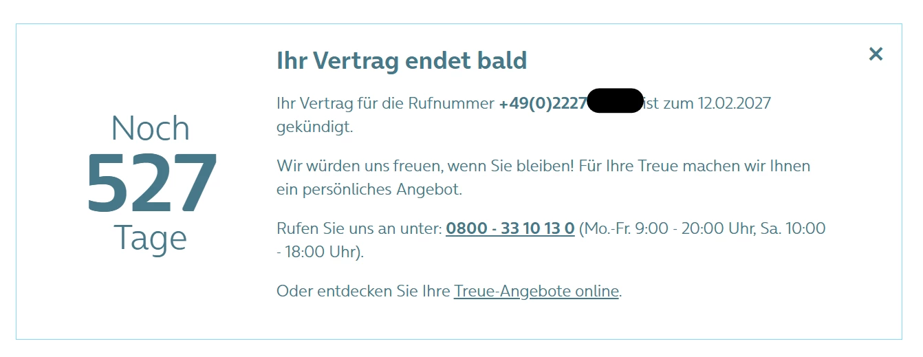 Die Rufnummernmitnahme beauftragst du bei deinem neuen Anbieter. Die Rufnummer wird automatisch zum Vertragsende freigegeben.