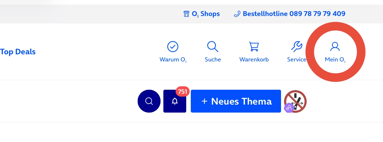Wenn ich auf den blauen Button „Mein O2“ klicke, werde ich jedes Mal ausschließlich in den Community-Bereich weitergeleitet.