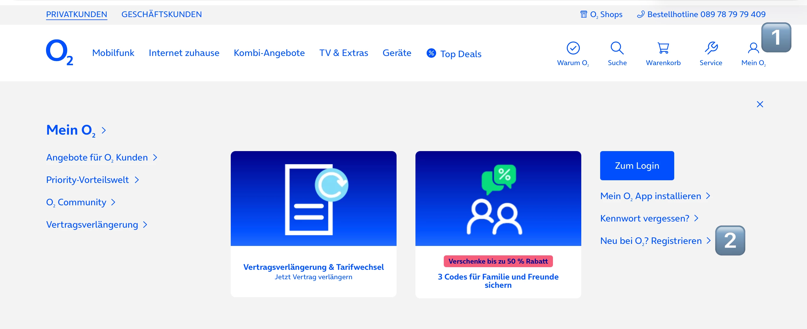 Zum Mein O2 login oben rechts kilicken und mit der Rufnummer anmelden. Nicht mit dem Forum Login.