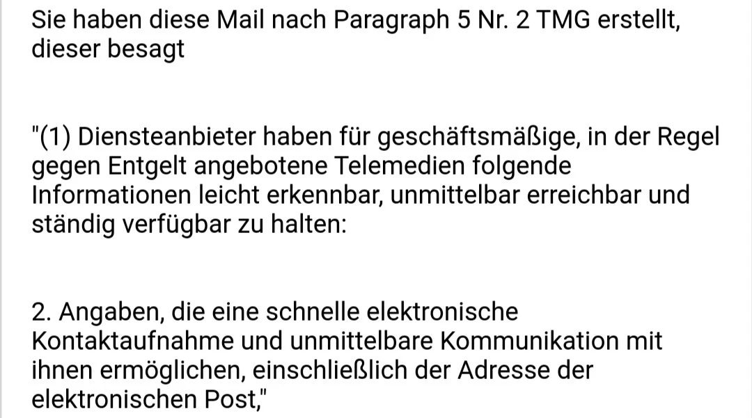 Daher steht auch “E-Mail-Kontakt nach § 5 Nr. 2 TMG”. “Nur Website betreffend” ist vielleicht etwas zu eng gefasst, aber der Anwendungsbereich des TMG umfasst nicht die Kontaktaufnahme zu Vertragszwecken.