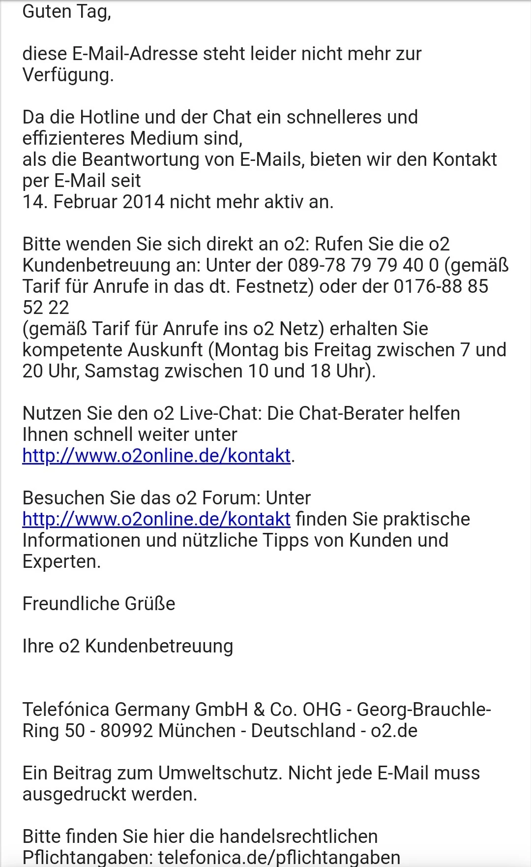 Übrigens, ich finde es auch nicht gut, dass es keinen E-Mail-Kontakt gibt, verstehe aber warum o2 diesen Kanal damals eingestellt hat.