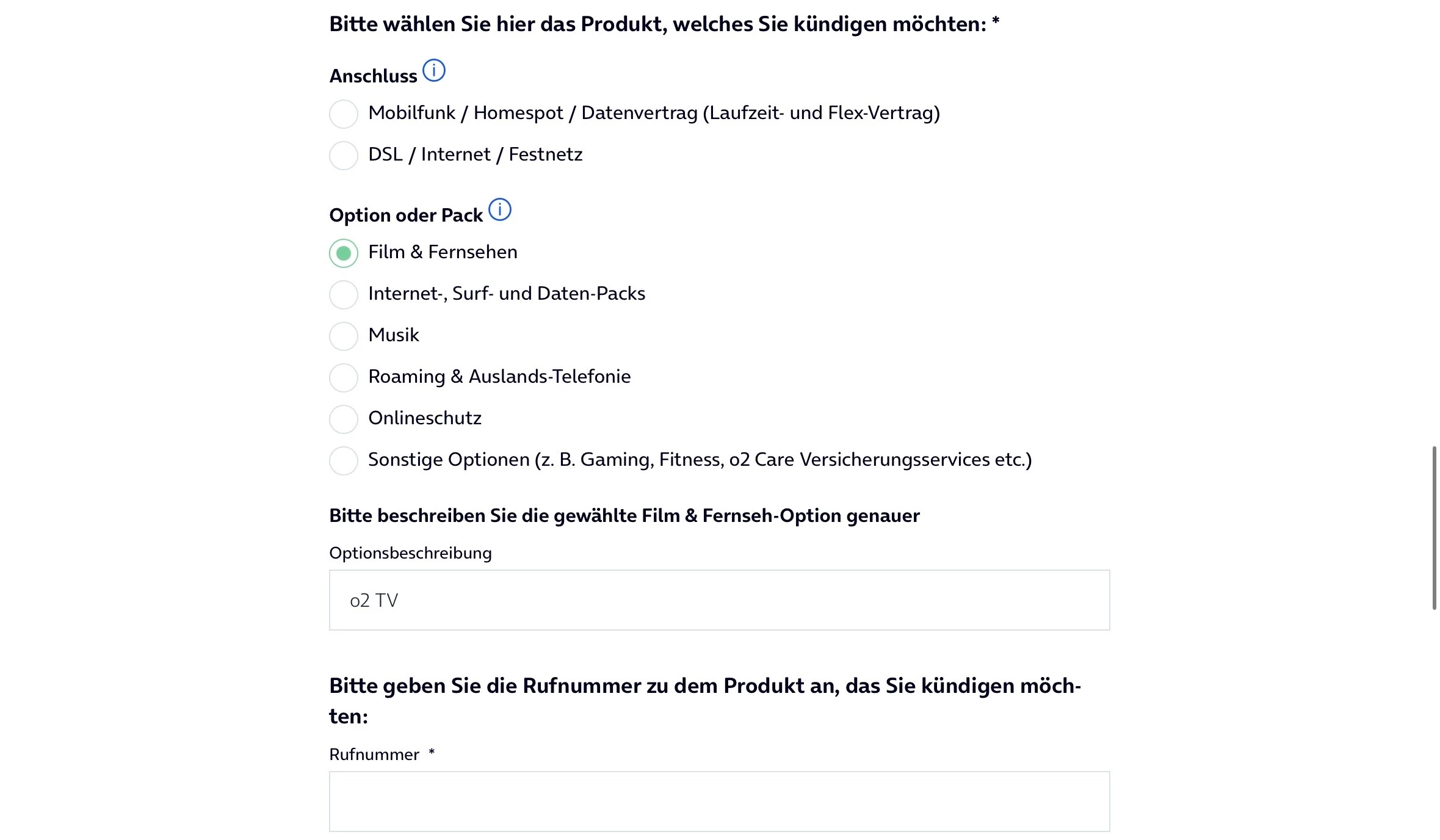 Kündigung von O2 TV M nicht möglich - Seite wird nicht angezeigt