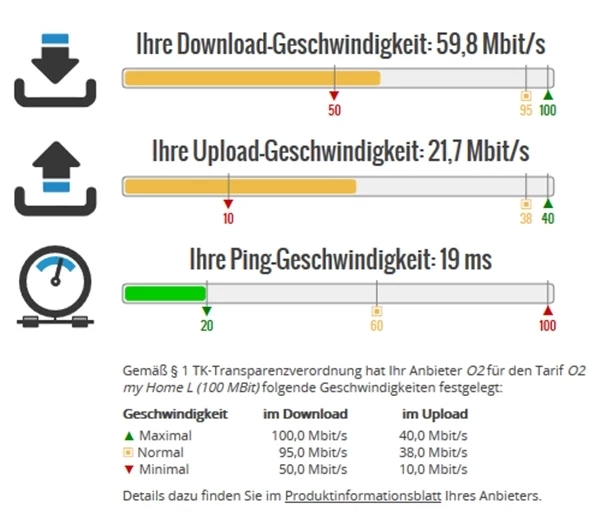 Falls dir mal ein Technicker über den Weg läuft, bitte ihn doch mal mein Speed ein wenig zu erhöhen. Sind ja fast die Werte, die ich bei der 50er Leitung hatte.