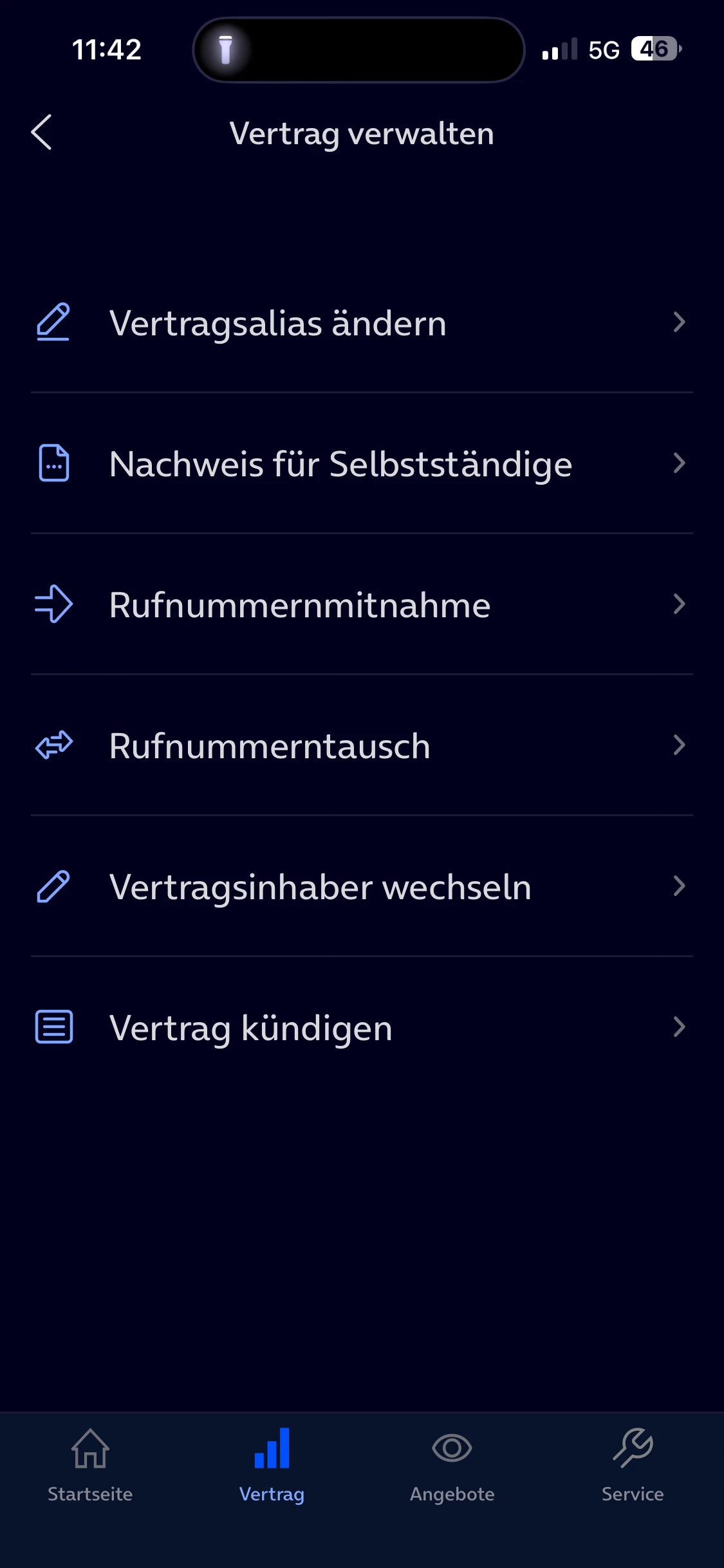 Bei Vertrag verwalten/ kündigen