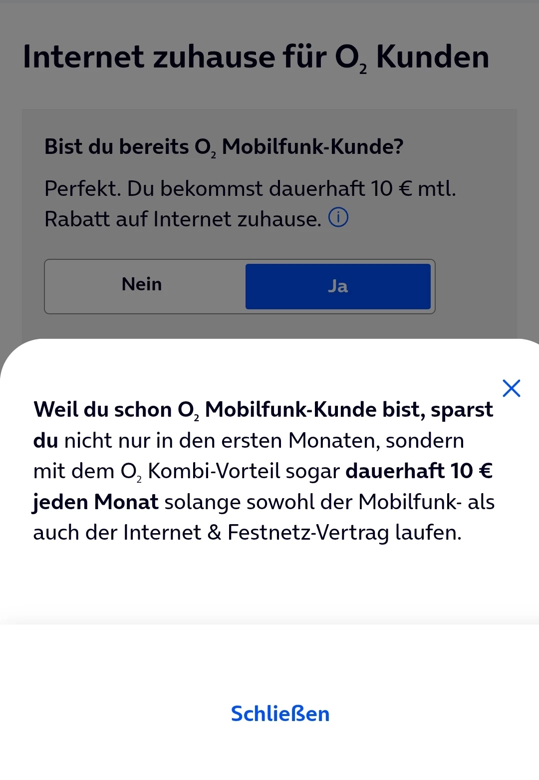o2 Kunde = o2 Mobilfunkkunde, der einen o2 Home Neuanschluss bestellt und in den letzten 12 Monaten keinen o2 Home Vertrag hatte, erhält 12 Monate Neukundenbonus und ab dem 13. Monat dauerhaft 10€ Kombivorteil.