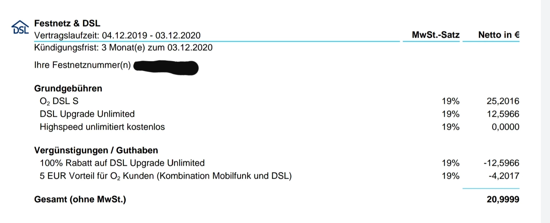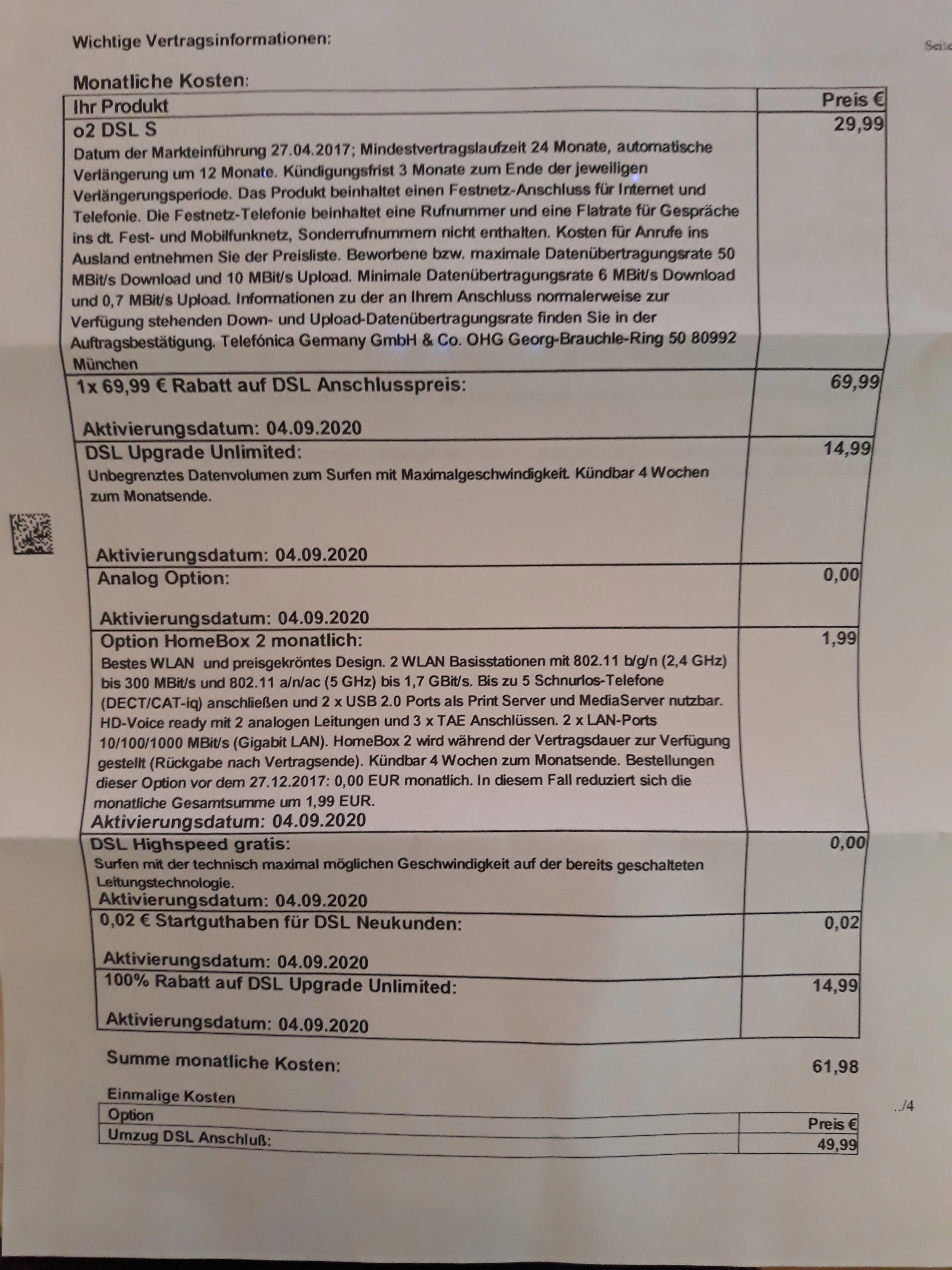 3. Die Summe der monatlichen Gesamtkosten stimmt nicht? Die Summe von 61,98 € ergibt sich nur, wenn man den Rabatt auf DSL Upgrade Unlimited dazuzählt und nicht korrekterweise abzieht…?