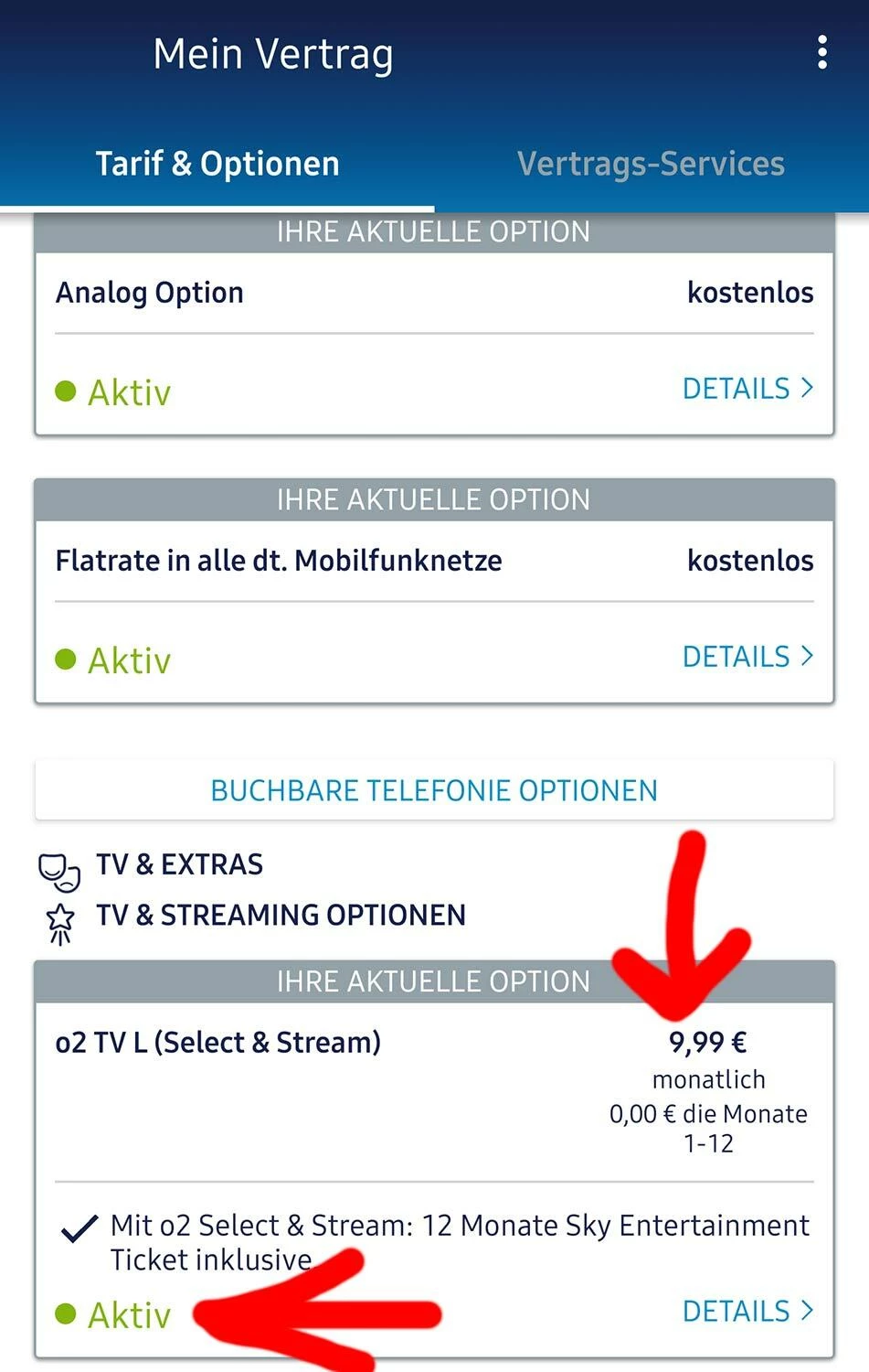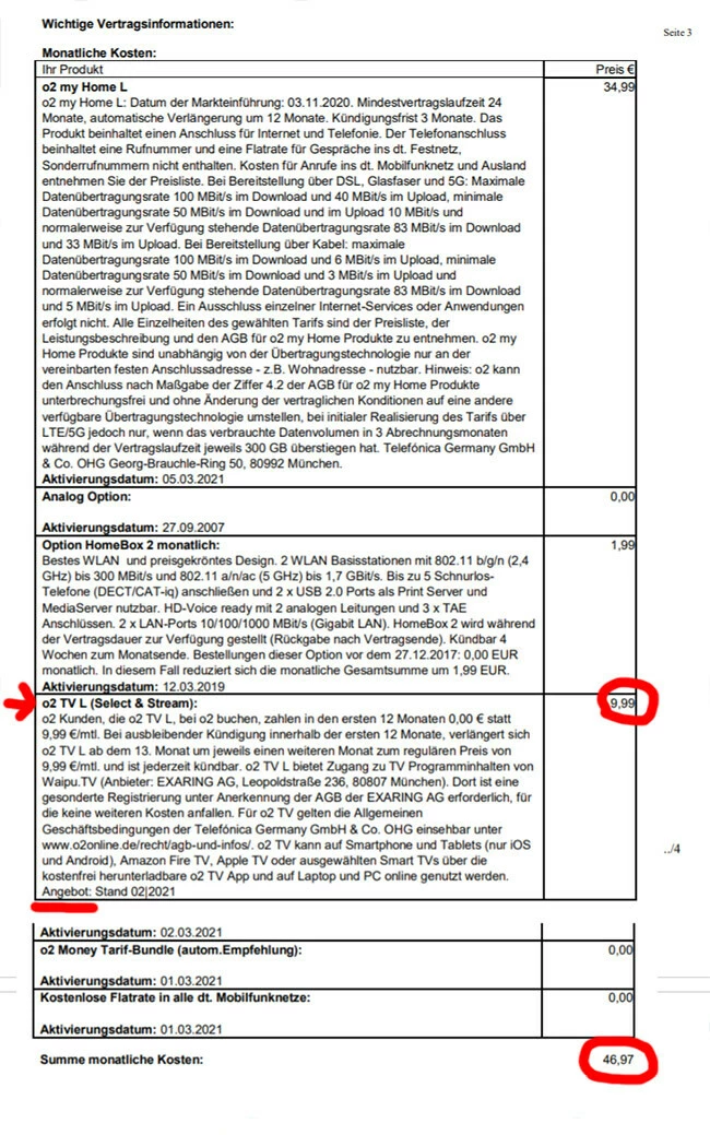 Der Grund dafür ist die aktivierte “o2 TV L (Select & Stream)” Option welche mit 9,99 € pro Monat berechnet wird. Ich habe bereits oben in einem Beitrag geschrieben, dass ich diese Option nicht benötige.