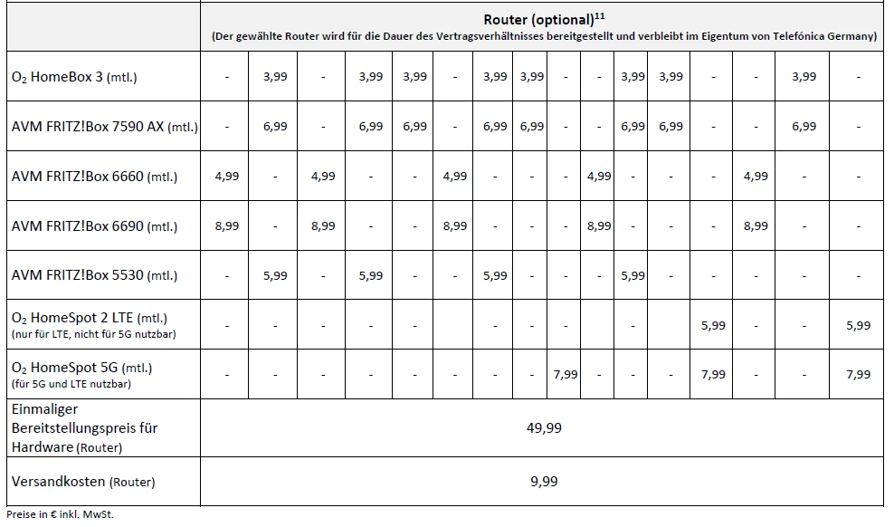 Der gewählte Router wird für die Dauer des Vertragsverhältnisses bereitgestellt und verbleibt im Eigentum von Telefonica Germany