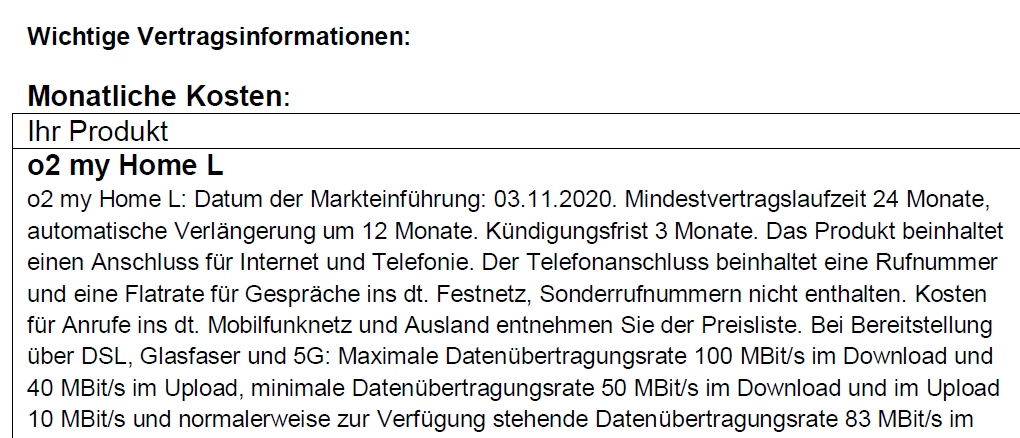 Aufgrund eines Glasfaserangebotes von EWE möchte ich mein DSL Anschluss kündigen, frist dafür ist der 7.4.2021. Für einen neuen Job im Homeoffice benötige ich jedoch schon früher eine schnellere Verbindung und rief die O² Hotline an “Ich brauche schnelleres Internet, ABER NUR WENN ES MEINE KÜNDIGUNGSFRIST NICHT ÄNDERT!!!!” Anwort von O² “Kein Problem, das kann ich so umstellen!”