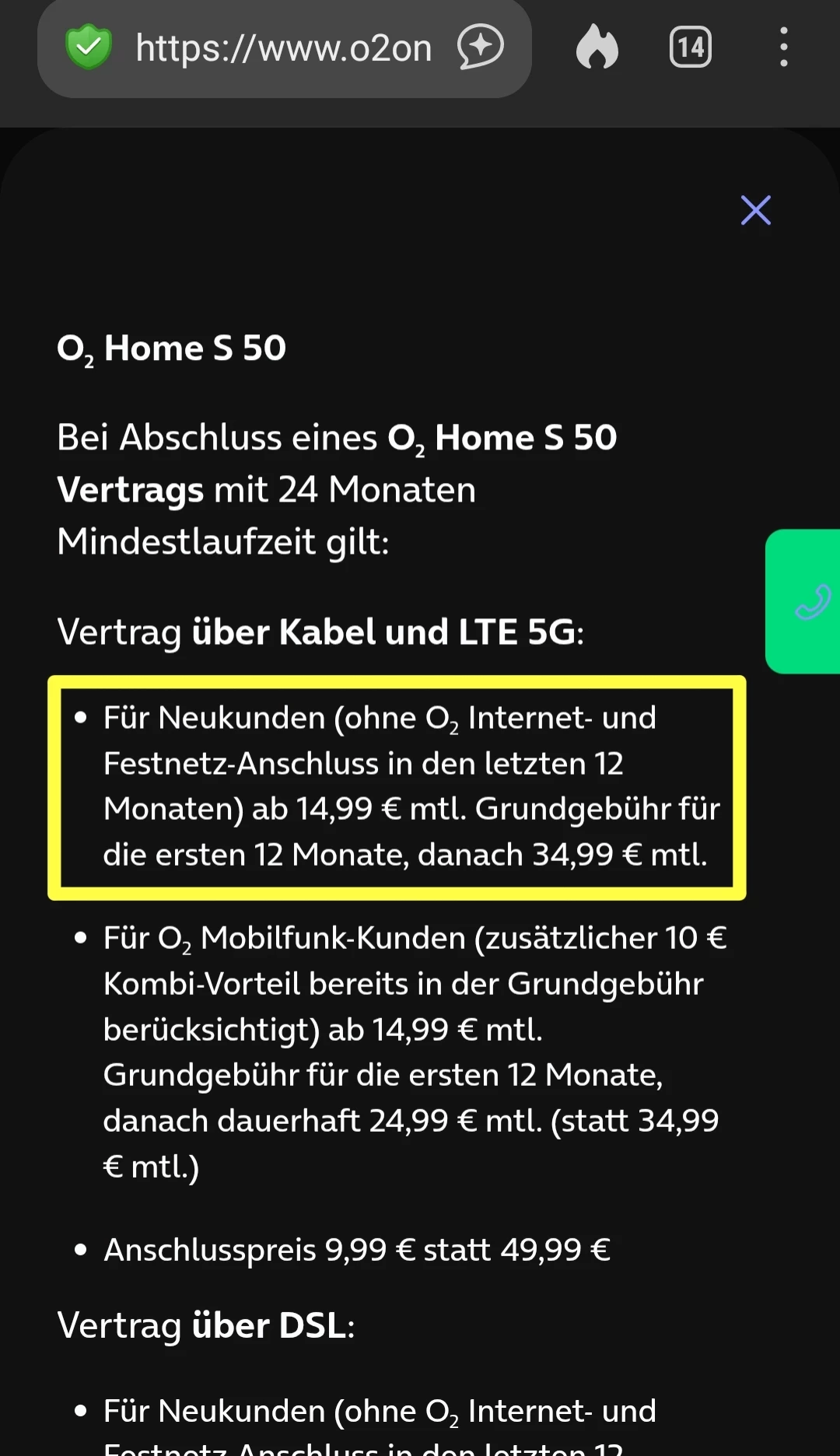 Also 14.99 Euro die ersten 12 Monate, danach 24,99 Euro