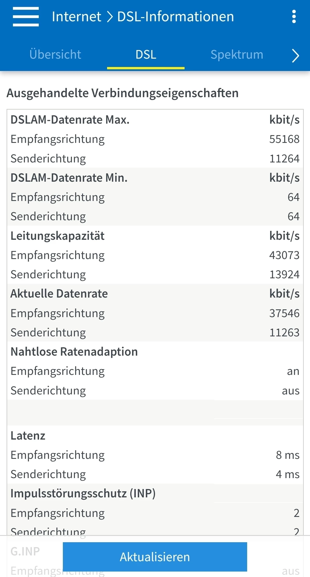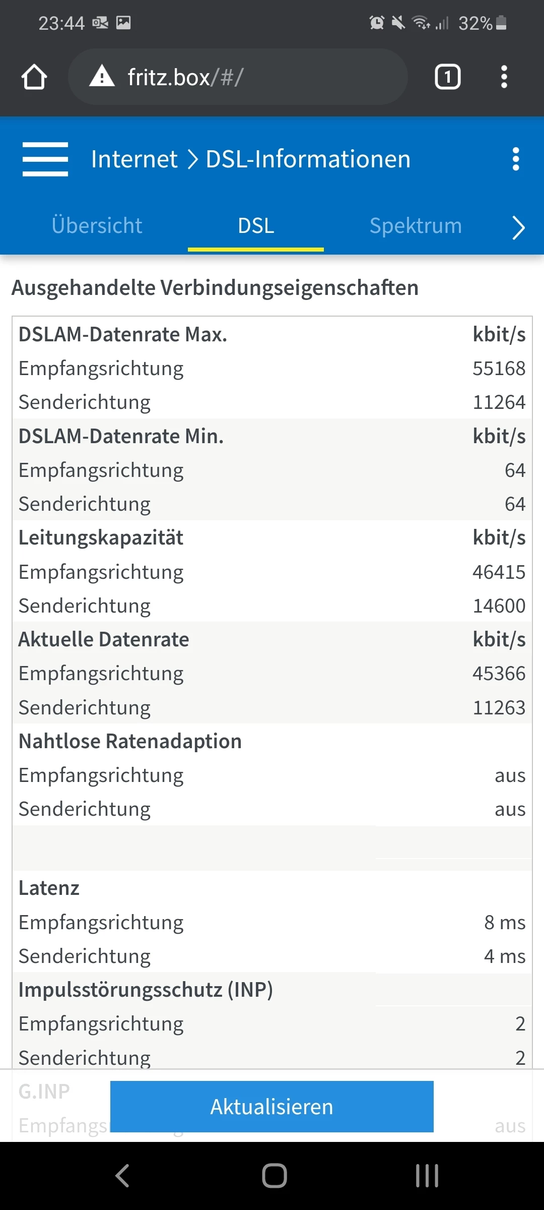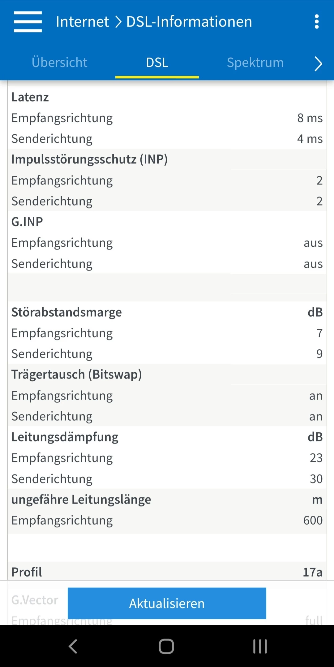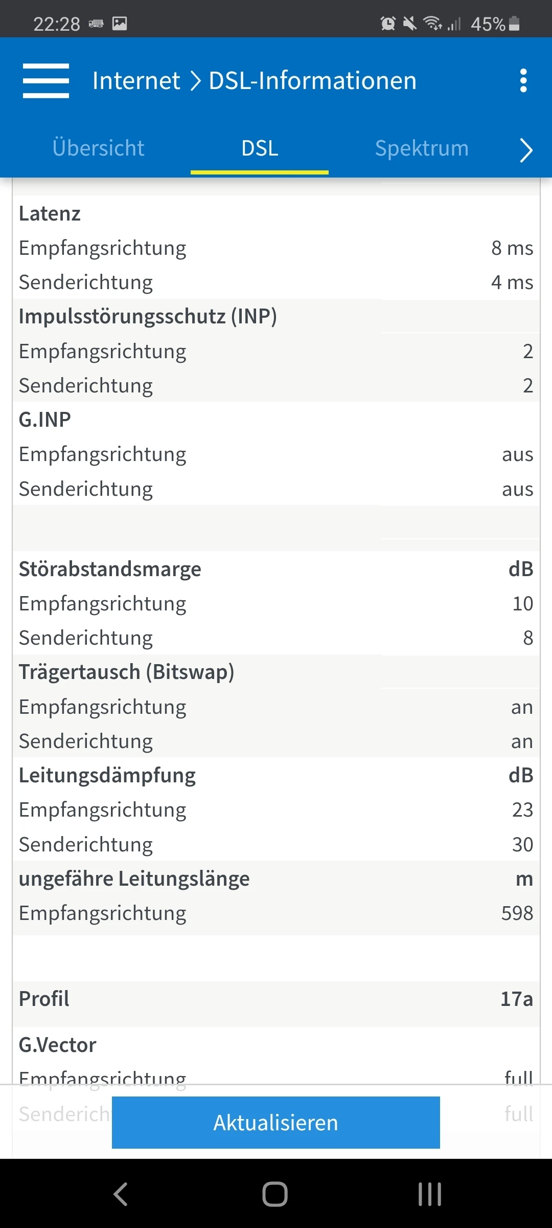 Poste bitte die Tabelle unter “DSL-Informationen” - “DSL” mit allen Leitungsparametern.