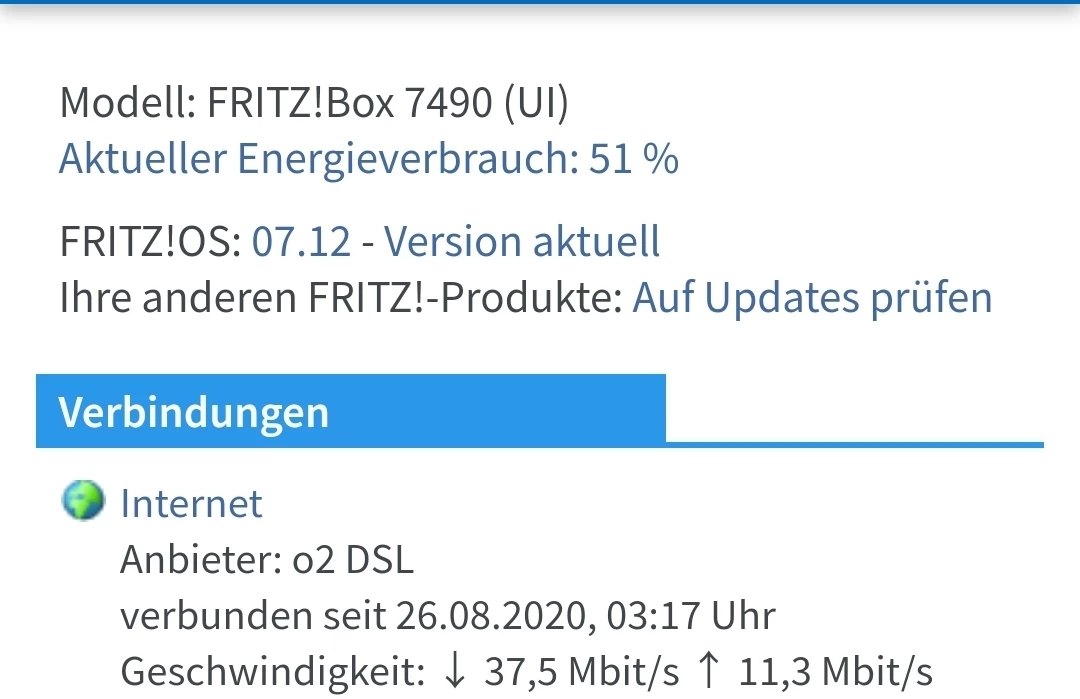 Ich benutze eine 7490 und prüfe die Geschwindigkeit unter anderem auf der Benutzeroberfläche des Routers