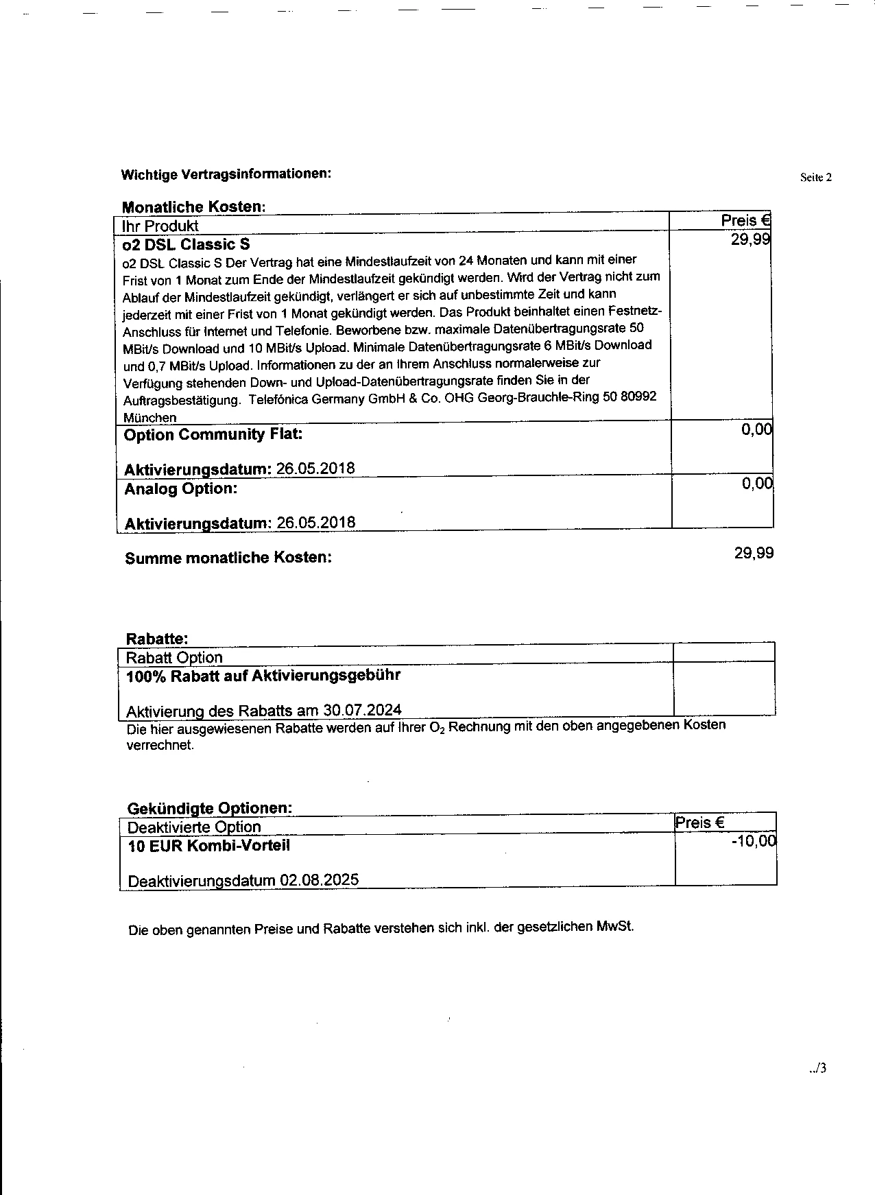 Heute kam dann ein Brief in dem uns mittgeteilt wird, dass es eine Änderung bei dem DSL Vertrag gibt. Anstatt 10€ Kombirabatt gibt es ab sofort nix mehr.