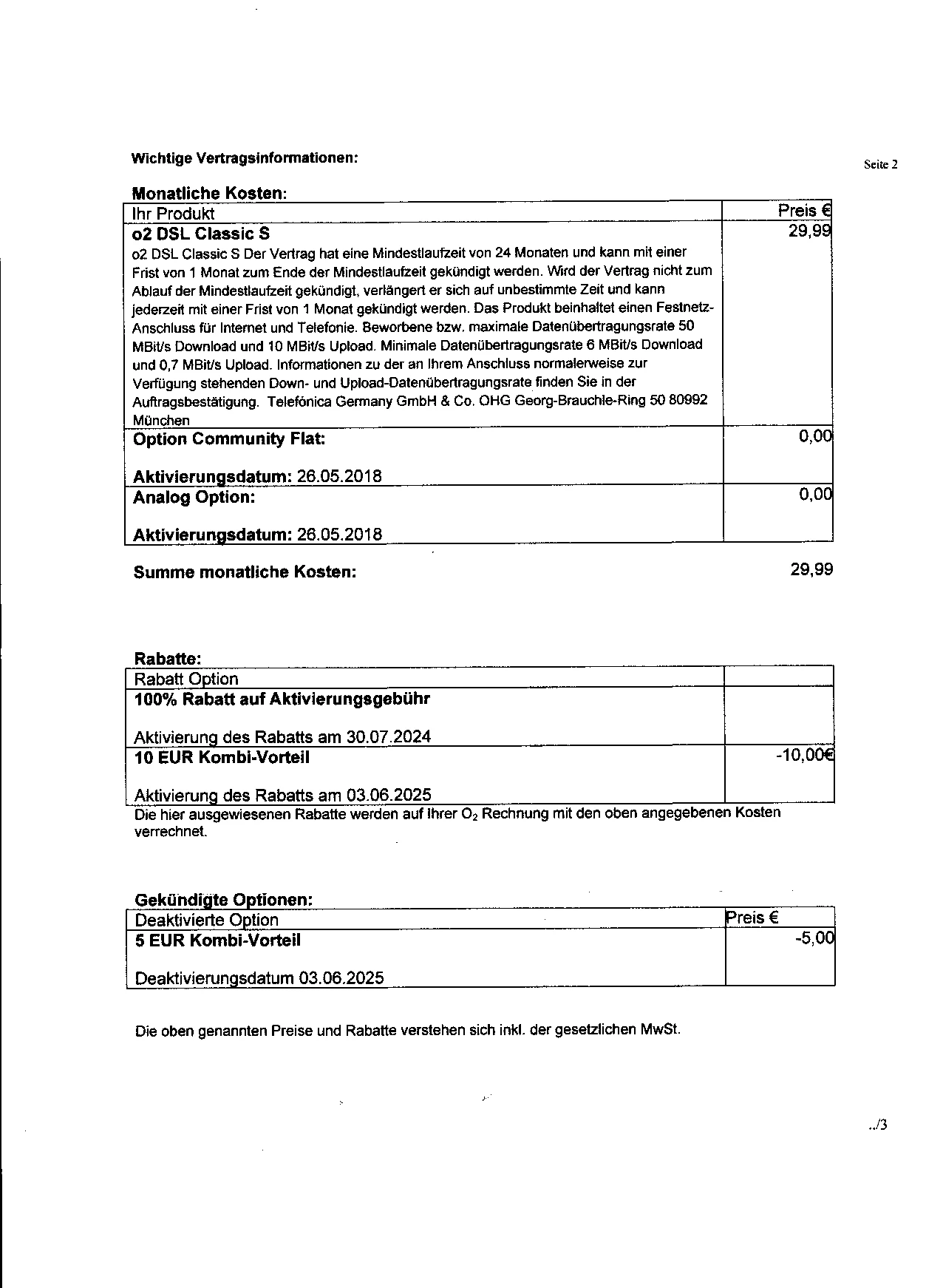 nachfolgend erhalten Sie Informationen zu den aktuellen Tarifkonditionen Ihres DSL Classic S Vertrags.