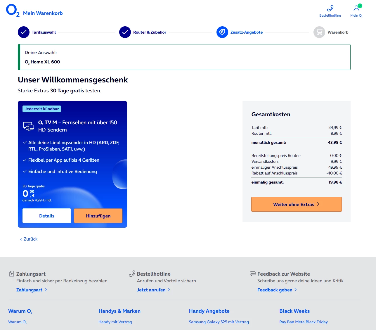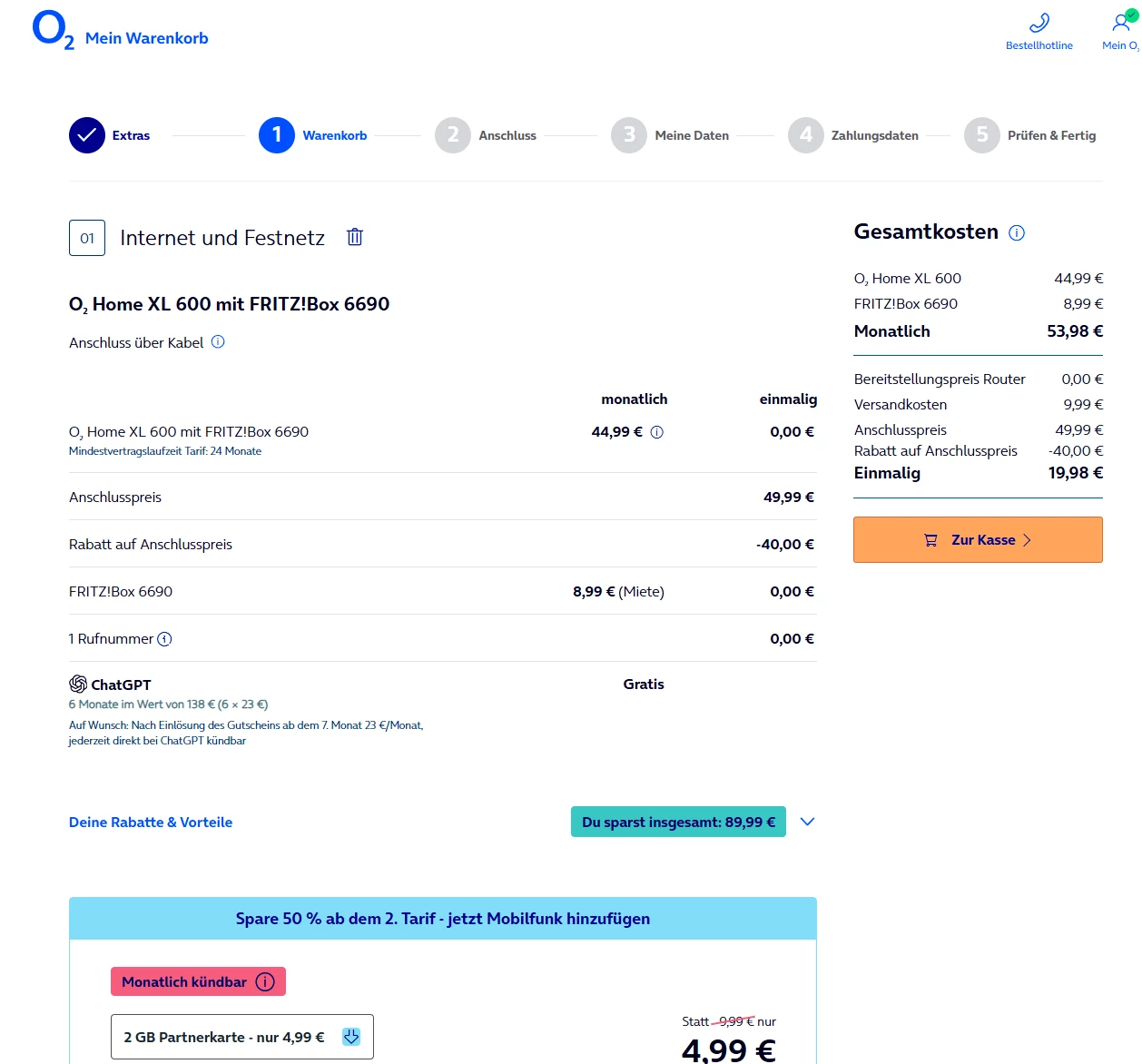 Bei den ersten Schritten wird der monatliche Preis in Höhe von 34,99€ angezeigt, sobald ich aber bei der Kasse kurz vorm Abschluss bin wird der höhere Preis von 44,99€ angezeigt.