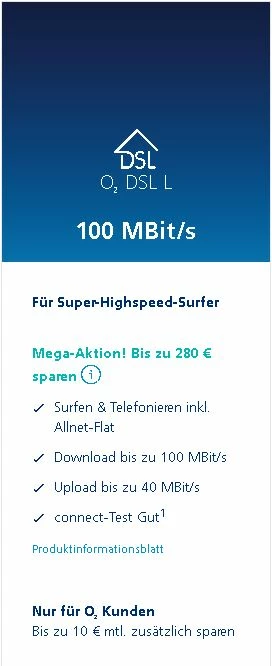 zur Zeit habe ich einen O2 DSL L Vertrag mit "Option Speed" und laut Ihrem Verfügbarkeitscheck einem technisch Maximalen Datendurchsatz von 50/10 Mbit/s. Da laut meiner Fritzbox 7490 aber eine Verbindugn wie Folgt : ↓ 109,3 Mbit/s↑ 32,4 Mbit/s synchronisiert ist, will ich diese so auch gerne nutzen. Dies will ich aber ohne einen bestehenden Vertrag zu Kündigen oder zu ändern, da dies sowieso dem max. enstspricht was Sie anbieten (siehe Anhang).