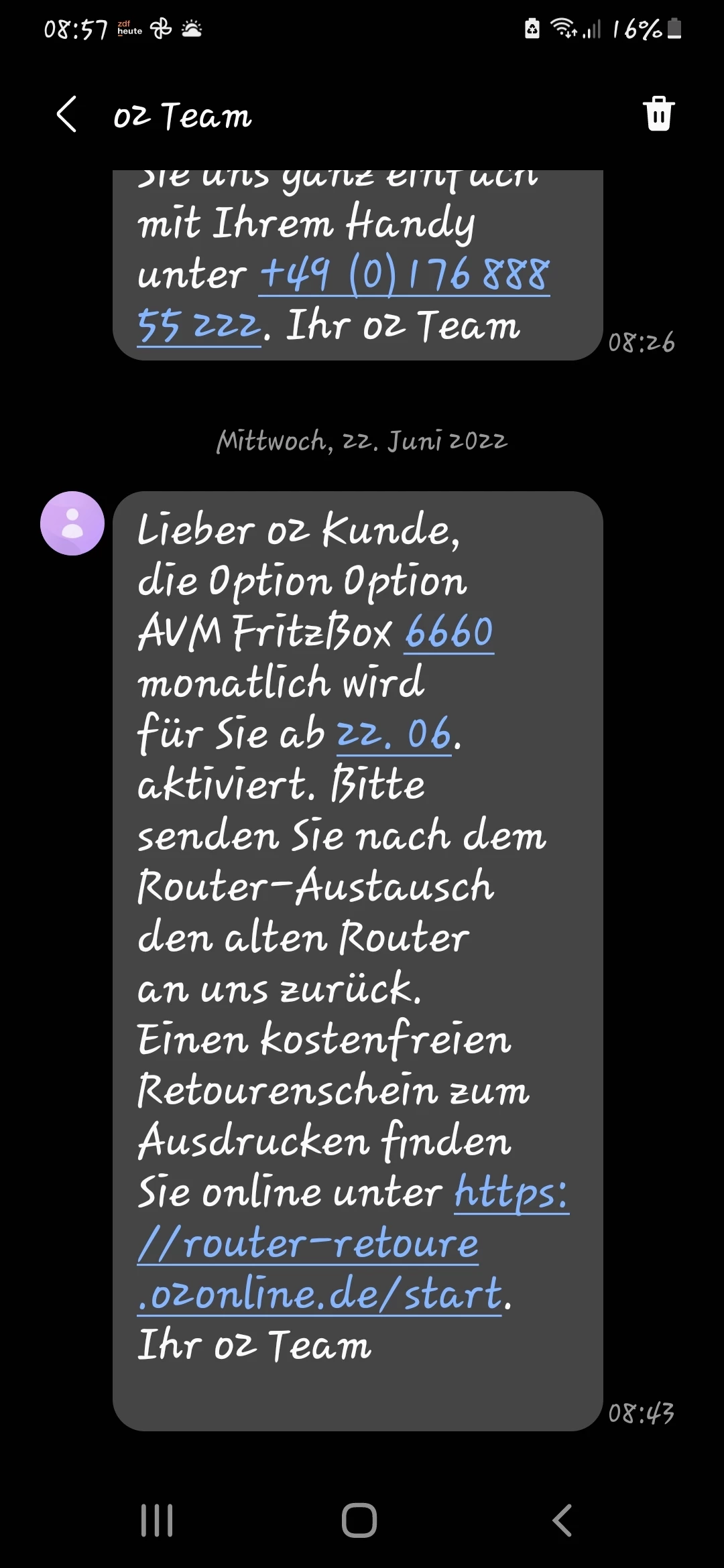 Zusätzlich soll ich jetzt mtl ca 5€ für einen Router bezahlen den ich nie erhalten habe!