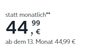 Bitte beachte, dass der Tarif regulär schon 44,99 € monatlich kostet.