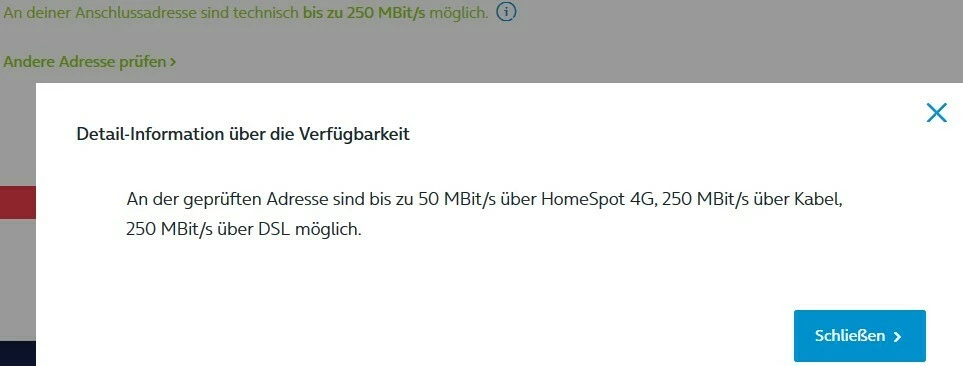Ob es einen solchen DSL-Ausbau gab, kannst du in der o2 Verfügbarkeitsprüfung erkennen, indem du auf das kleine “i” klickst.
