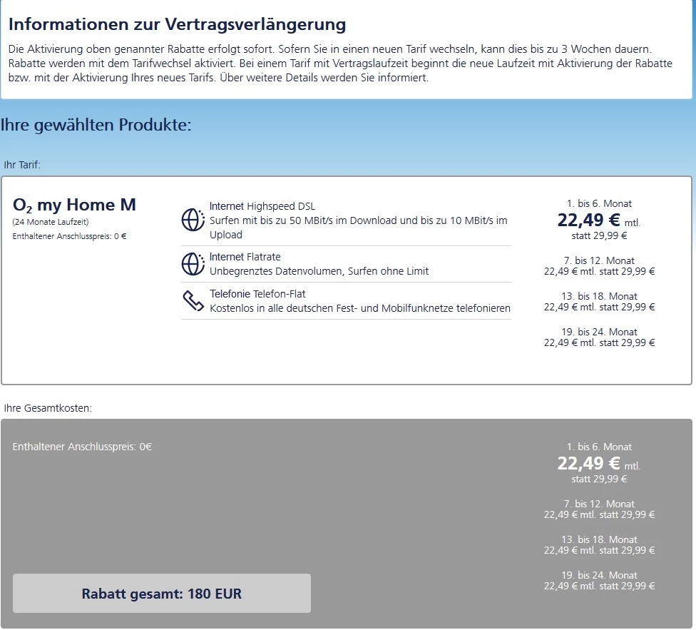 Ich finde persönlich den Rabatt für den Tarif my Home M gut. Da bekommst Du mehr Rabatt als ein Neukunde.
