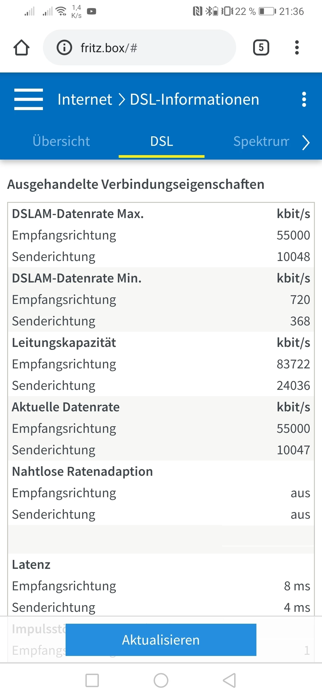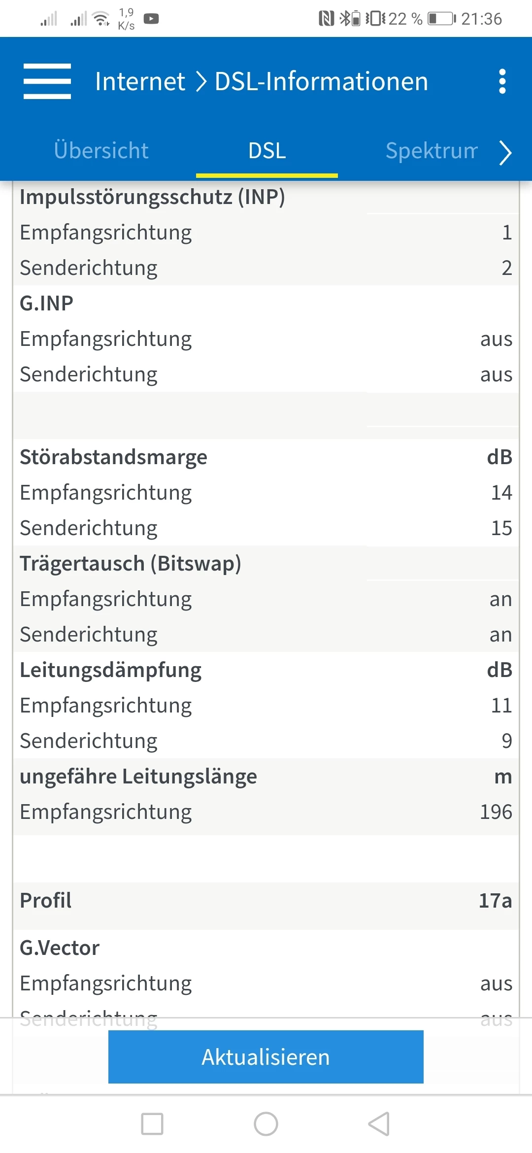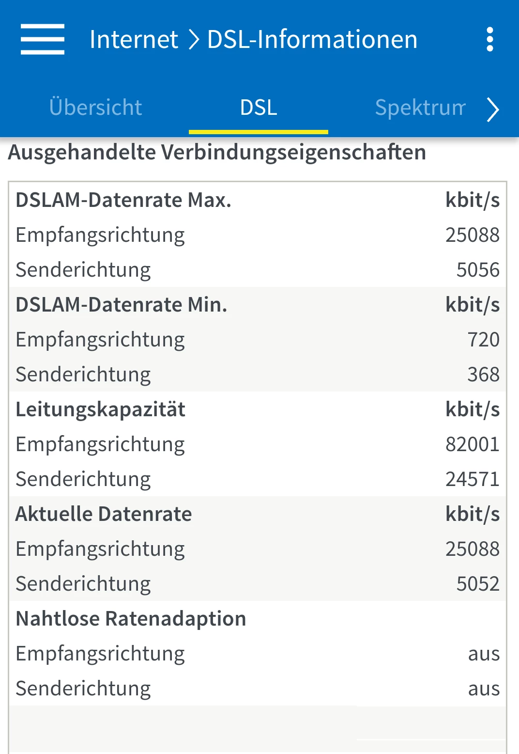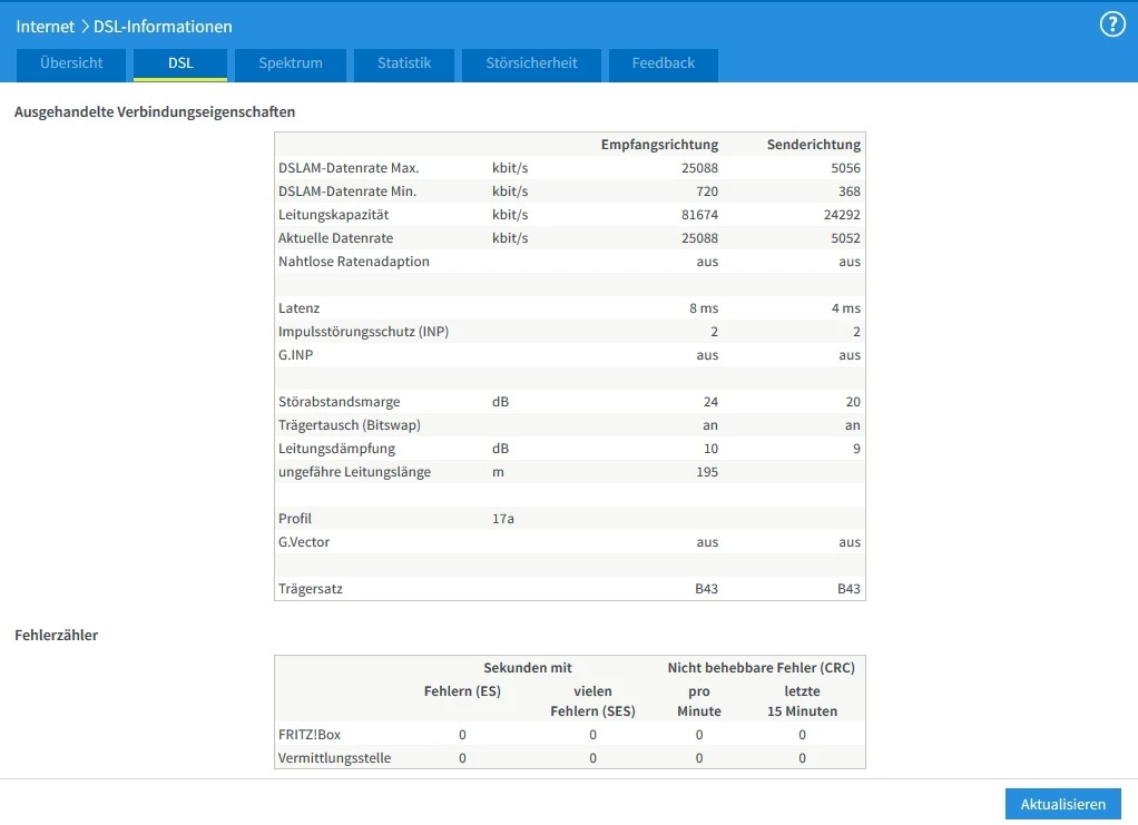 Hier mal ein Screenshot meiner DSL-Information, vielleicht kann man da was erkennen.