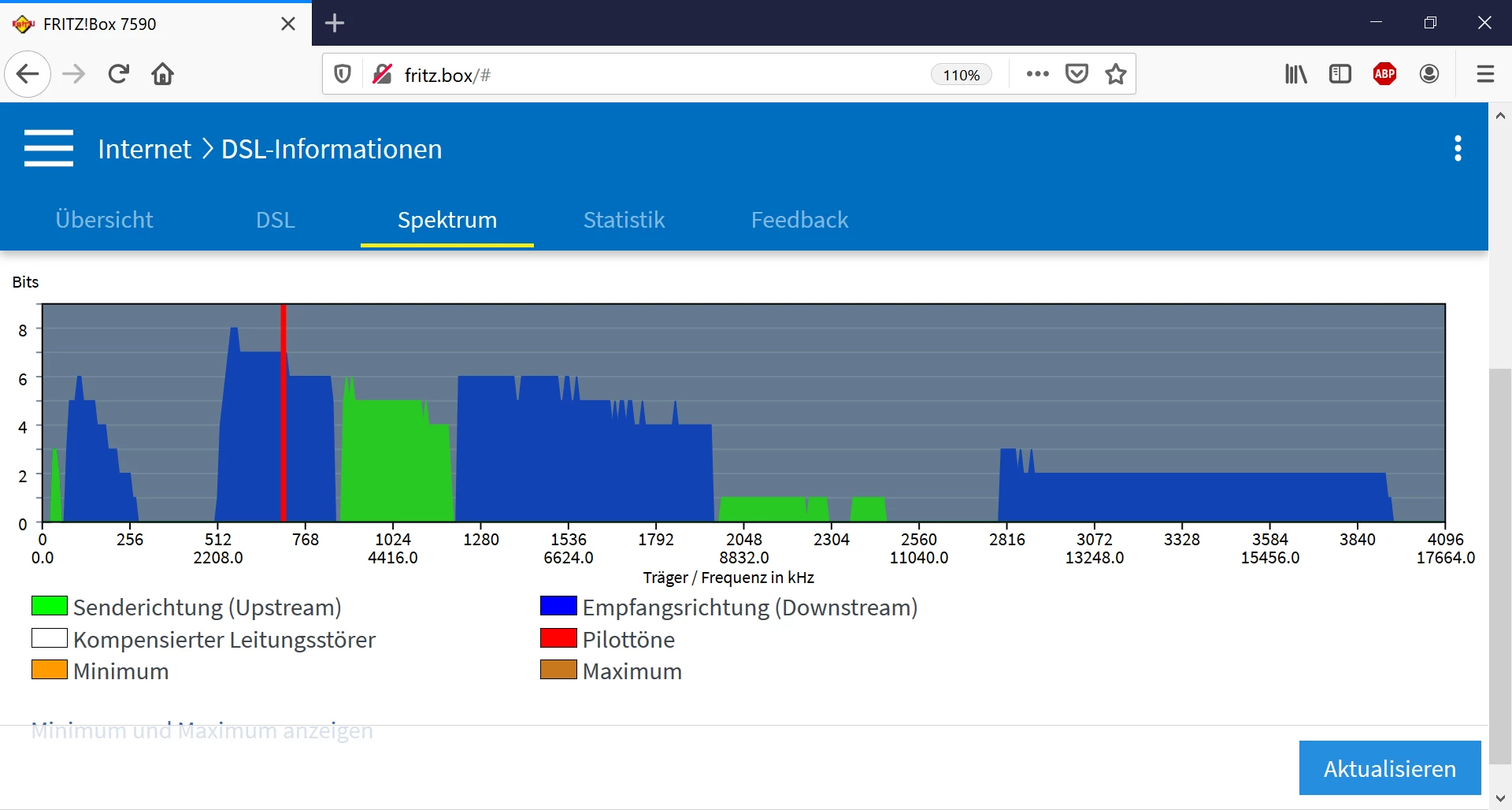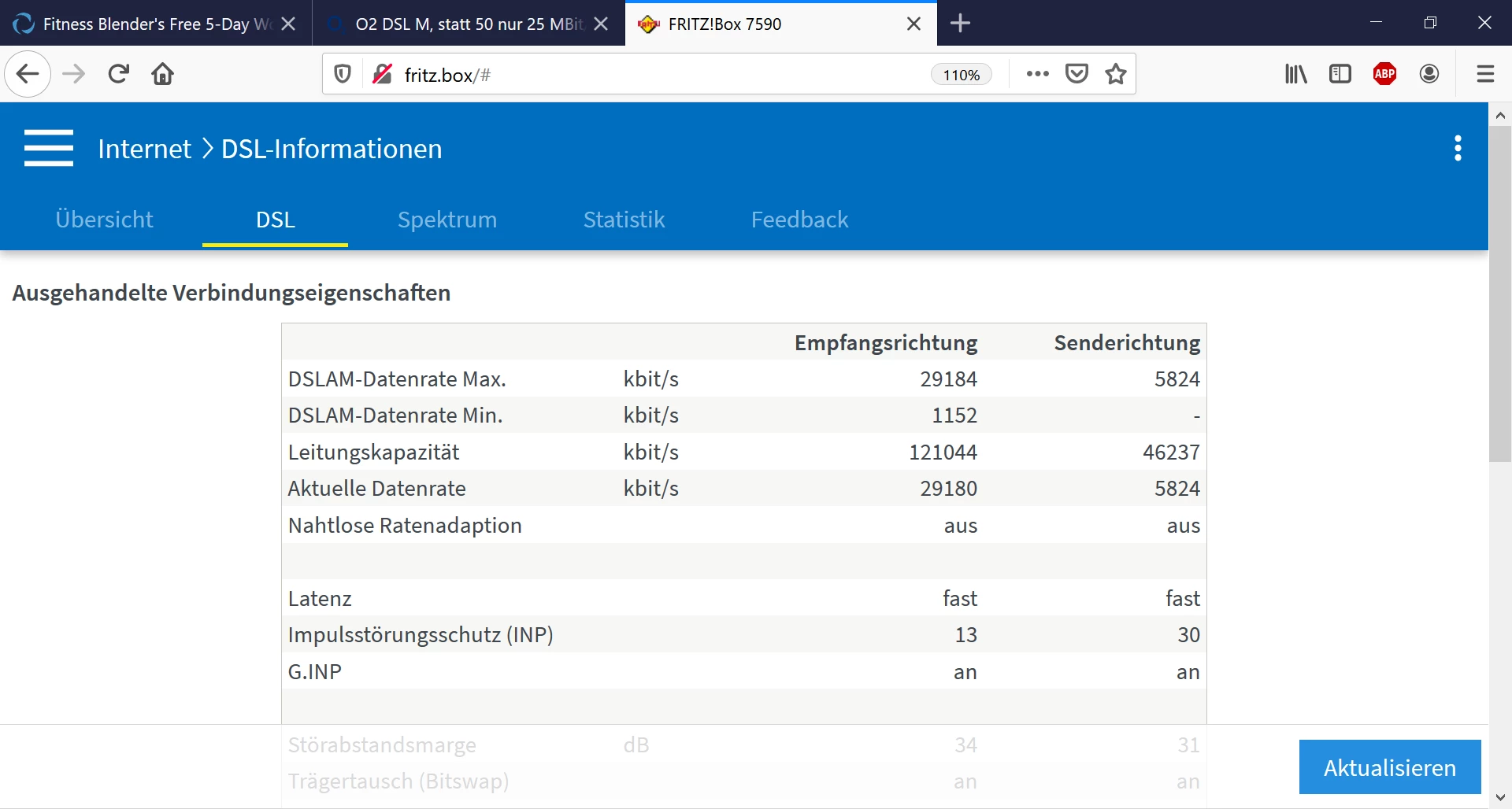 Um das ganze ein wenig besser einschätzen zu können, hast Du die Möglichkeit, einmal im Router zu schauen, was dort bei den DSL-Werten angezeigt wird?