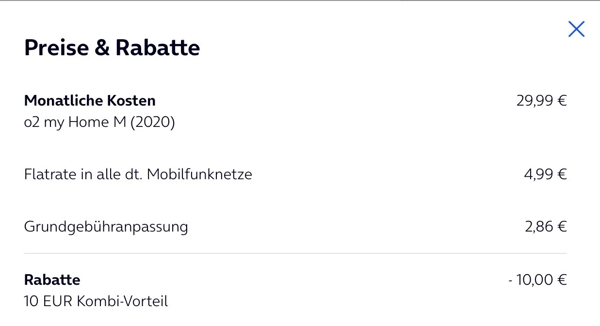 Den Kombivorteil findest du nicht in der o2 App. Wenn er aktiv ist, siehst du ihn nur im Kundenportal unter Preise & Rabatte.