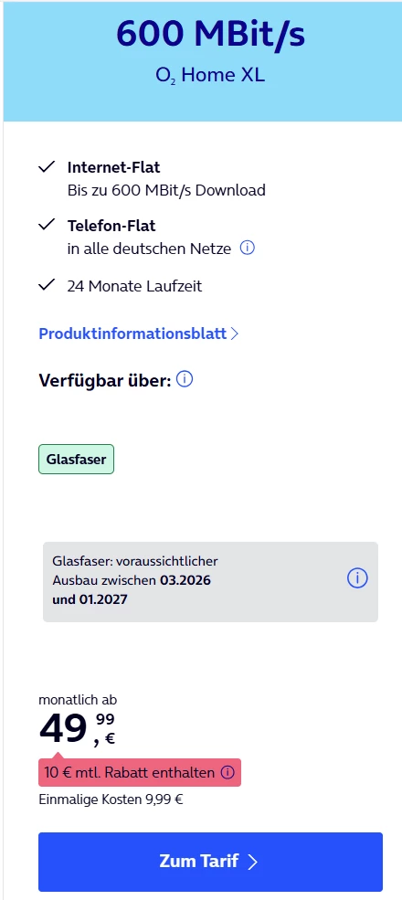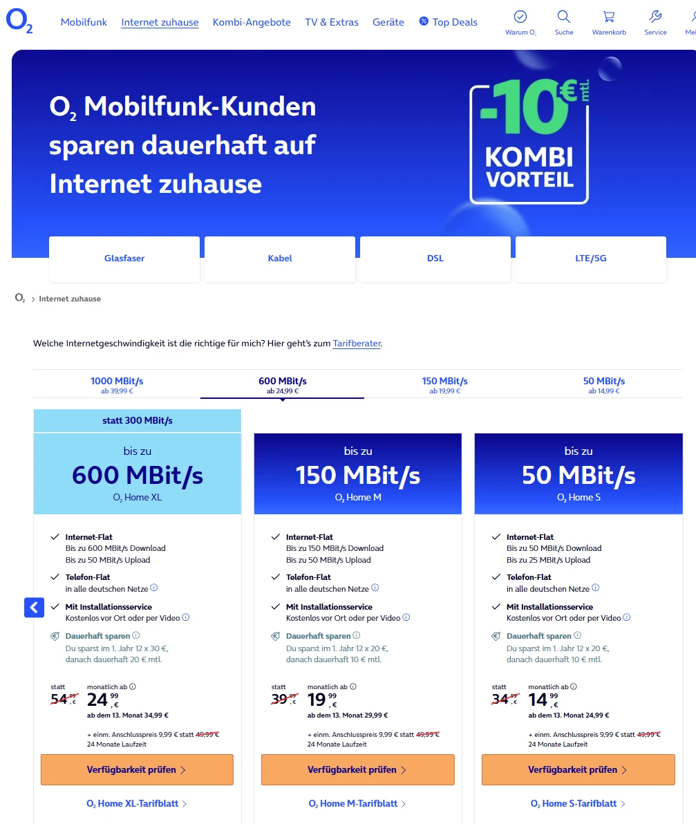 O2 Home XL 600: Höherer Preis nach Verfügbarkeitscheck