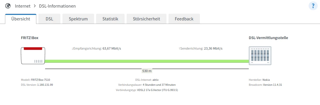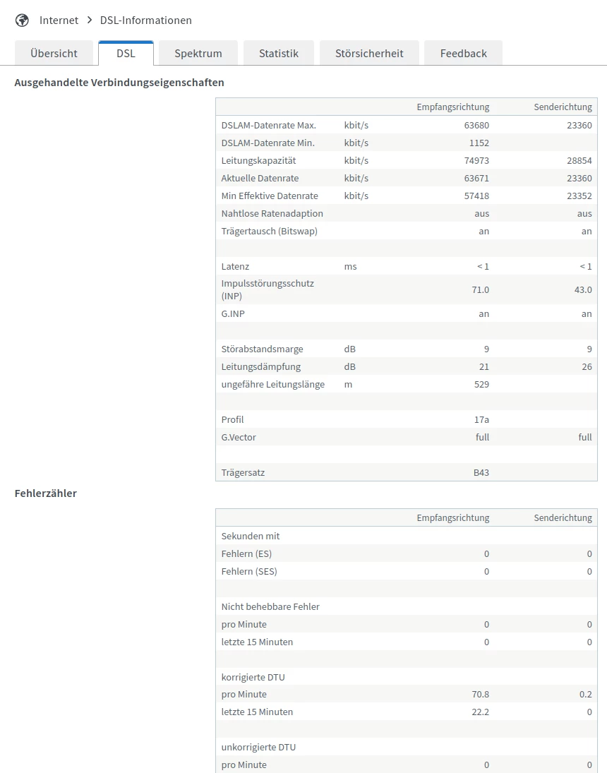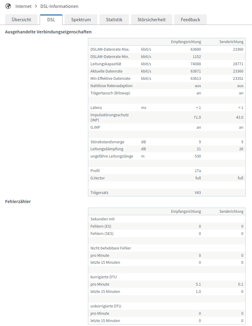 Leider ist "DSLAM-Datenrate Max" seit 3 Wochen immer noch auf 63680 festgeschraubt. Dafür gab es bisher keine Abbrüche.
