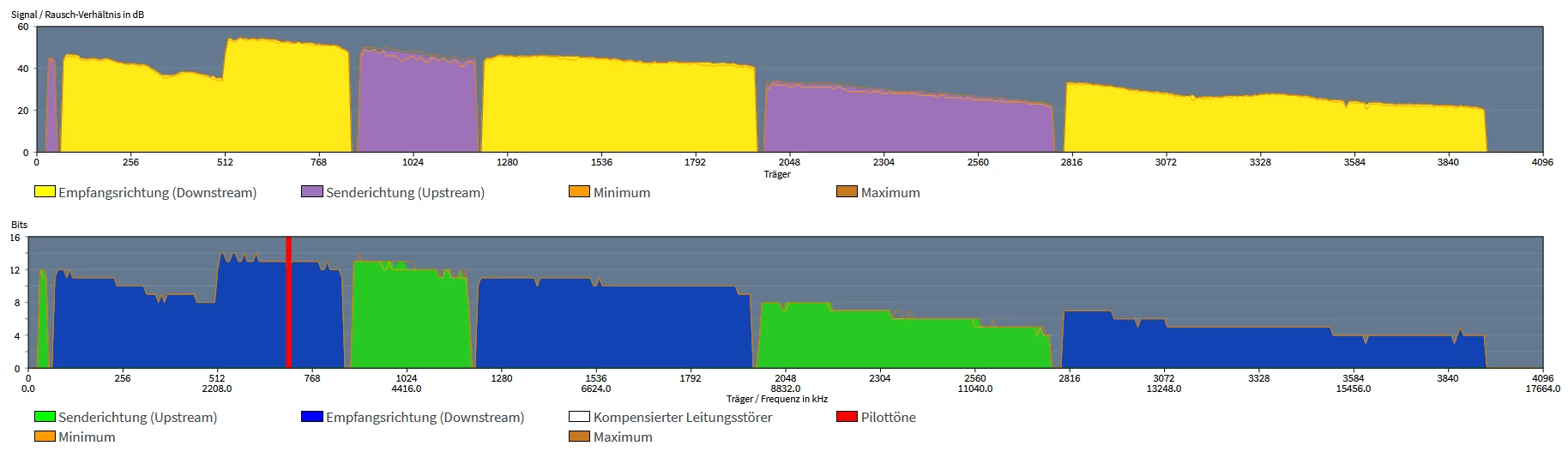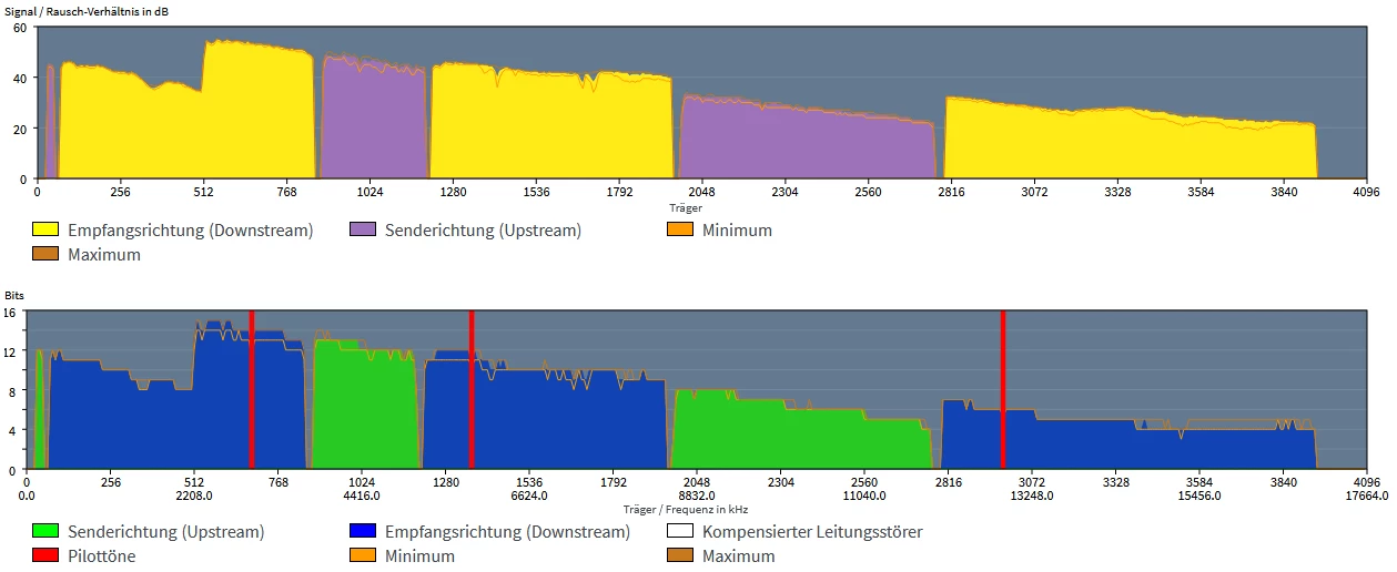 Idealerweise postest du uns die Tabelle “DSL” und das “Spektrum” mit aktivierter min/max-Anzeige.