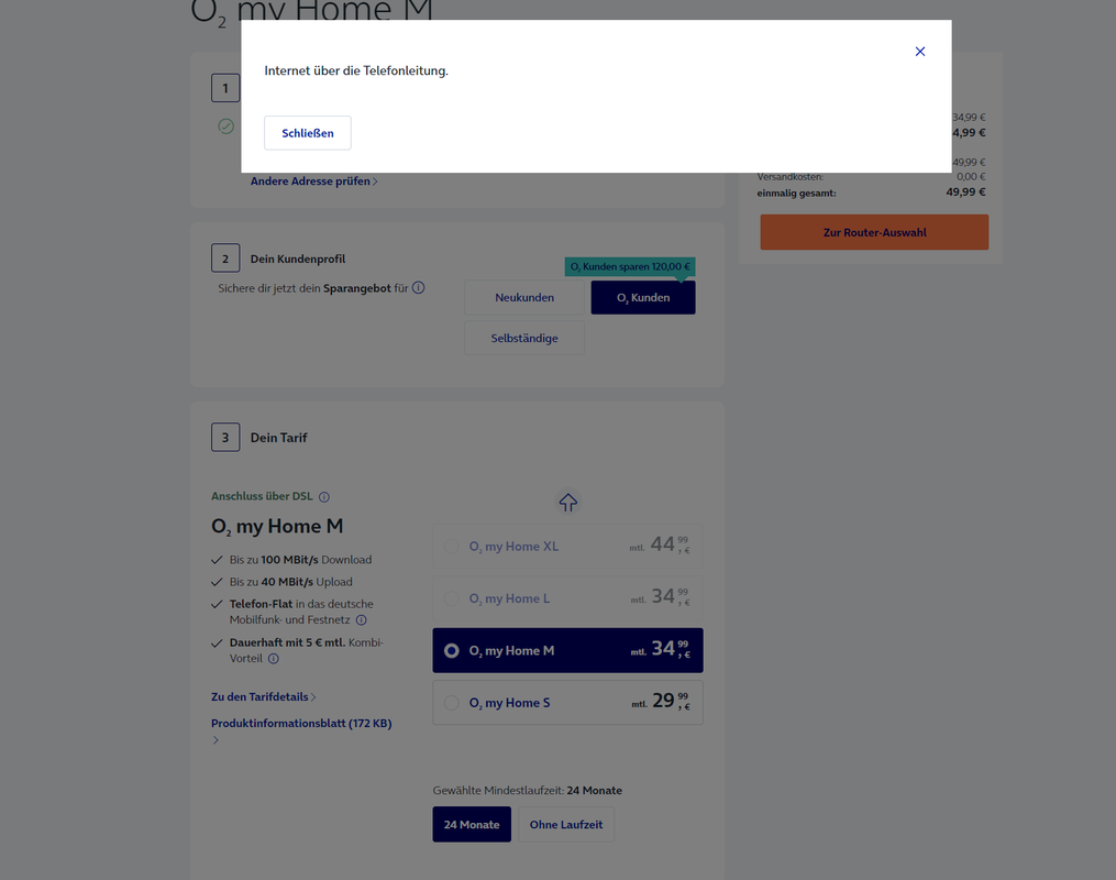 O2 My Home M Vertrag abschließen mit angegebenen Preis nicht möglich