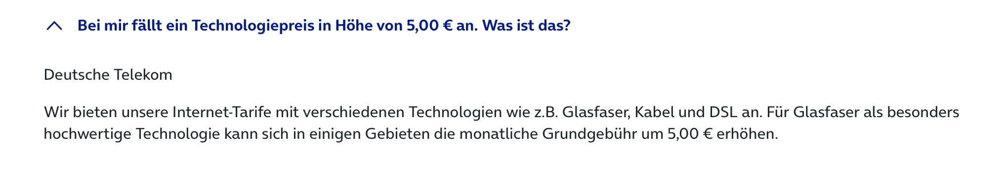 Den Technologieaufpreis hast Du nur, wenn FTTH/Glasfaser gebucht wird.