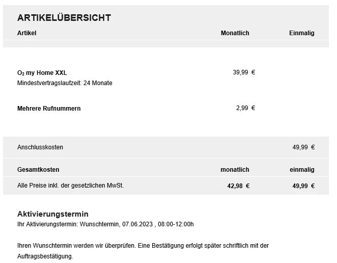 in meiner Bestellbestätigung wurde mir für den Tarif my Home XXL ein monatlicher von 39,99€ angegeben, weshalb ich auch diesen Tarif auch abgeschlossen habe.
